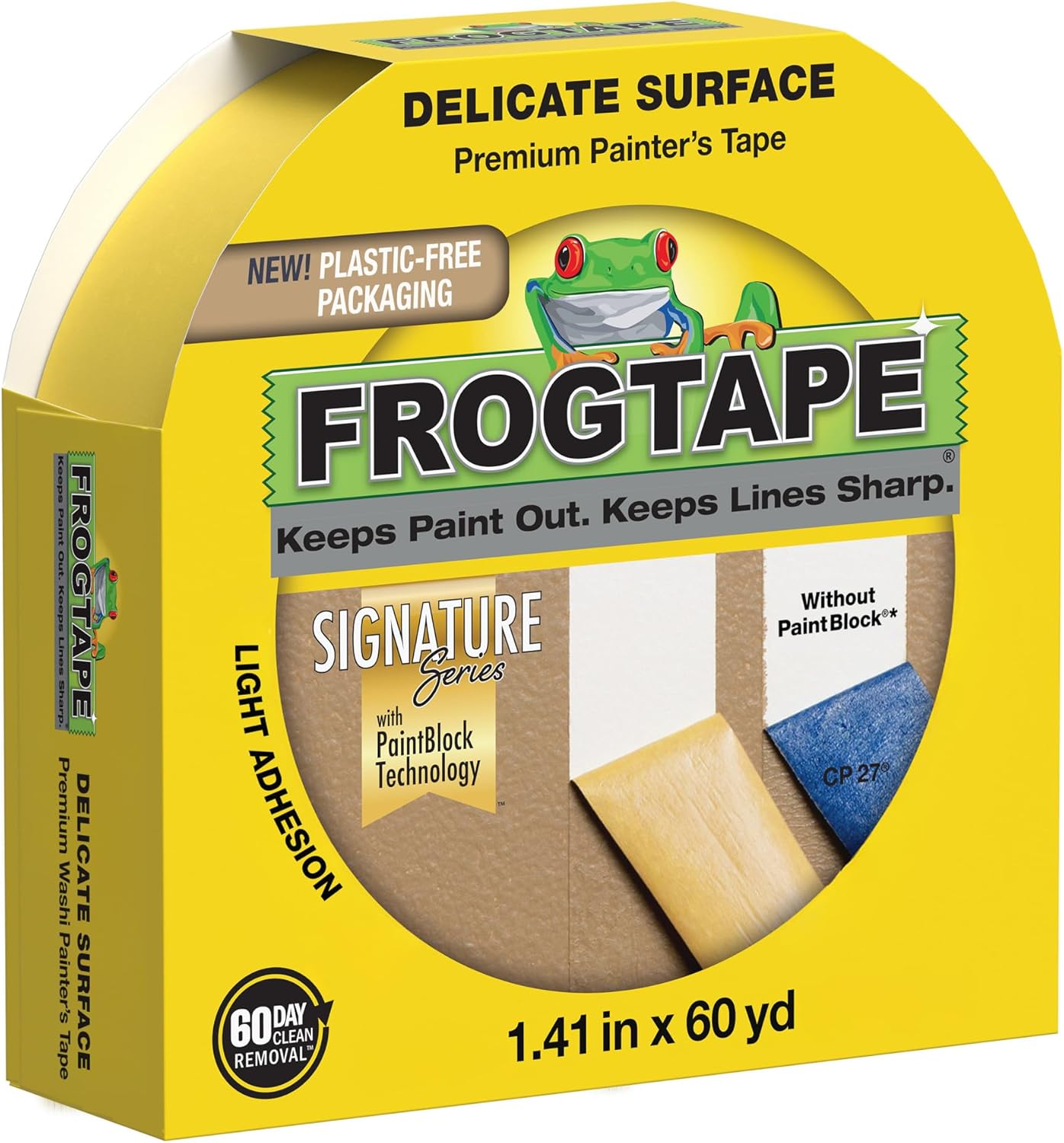 Get super sharp paint lines on your next project with FrogTape Delicate Surface Painter’s Tape. This premium washi painter's tape is treated with exclusive PaintBlock Technology to seal tape edges and prevent paint bleed. Plus, delicate surface painter's tape is specially designed with a lower adhesion level to help prevent surface damage on delicate surfaces like freshly painted walls, coated wallpaper and decorative projects.