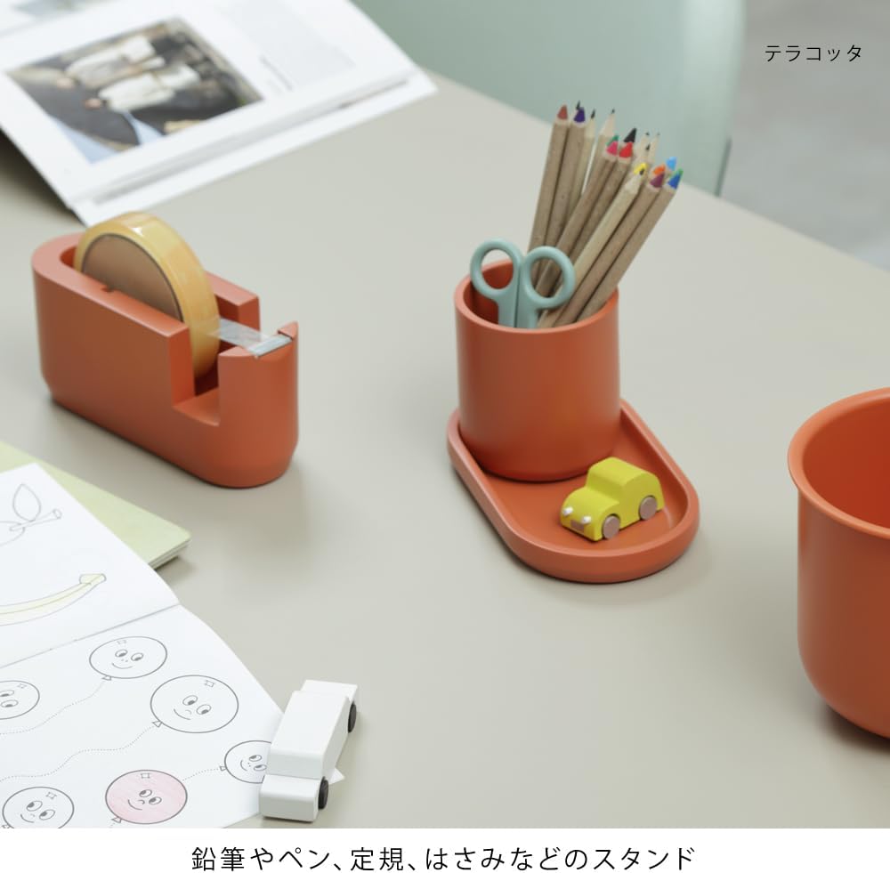 Max 60 colored pencils. Match with niko cups. Stand for pencils, pens, rulers, scissors, etc. You can also stack the pen stand on top of the tray (sold separately). Color matched with niko, tray, tape cutter, or as a gift. Size (W x D x H): 3.3 x 3.3 x 3.5 inches (83 x 83 x 90 mm); Weight: 8.8 oz (250 g); Material: Calcium Carbonate, Polyester resin (main unit), Silicone (non-slip). *Main unit: Matte finish.