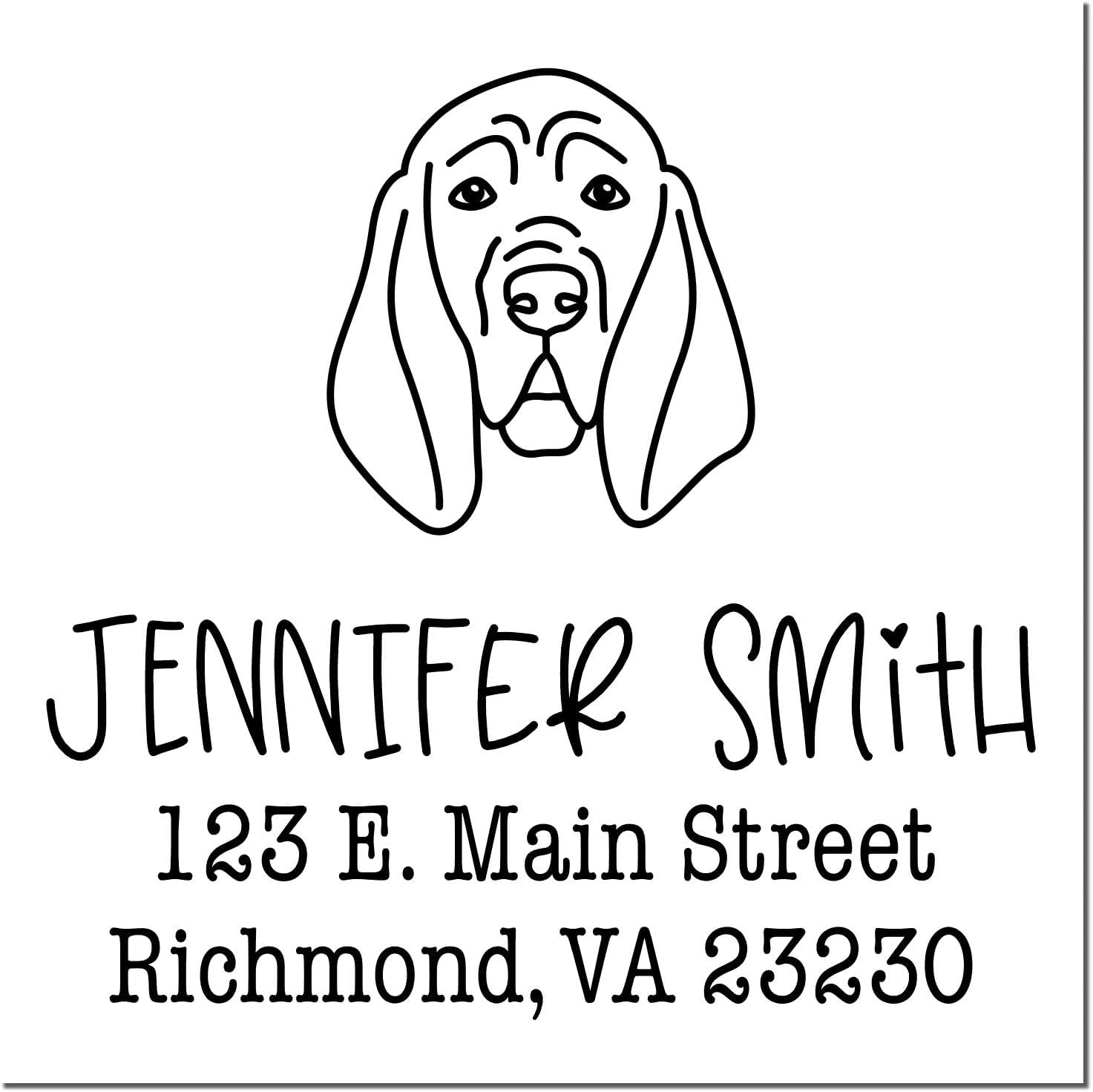 Transform Your Mail with Our Blood Hound Dog Address Stamp for Couples. Are you a couple who adores your furry friend? Elevate your correspondence with our charming Blood Hound Dog Address Stamp. This unique, custom stamper is not just a tool; it’s a delightful way to express your love for your canine companion while adding a personal touch to your mail. dog lovers, this stamp features a beautifully minimalistic design that captures the essence of the beloved bloodhound. Sleek Design Meets Functionality Our Blood Hound Address Stamp boasts a sleek 1-5/8 square design, making it the perfect size for all your mailing needs. The elegant black outline showcases the bloodhound’s iconic long, droopy ears and soulful eyes, creating a striking impression on every envelope or package. With smooth, continuous lines, this design is a masterclass in simplicity, ensuring that your address stands out while reflecting your love for this noble breed. Save Time and Effort Say goodbye to the hassle of writing your address over and over again. Our address stamp allows you to quickly and effortlessly add your address to letters, packages, and invitations. Whether you’re sending out holiday cards or wedding invitations, this stamp will save you precious time and effort, making your life easier during busy seasons. Look Professional Every Time With our Blood Hound Address Stamp, your mail will always look neat and professional. This is especially important for couples who want to make a great impression when sending out correspondence. The clean, crisp impressions of our stamp ensure that your address is always presented beautifully, reflecting your attention to detail and love for .