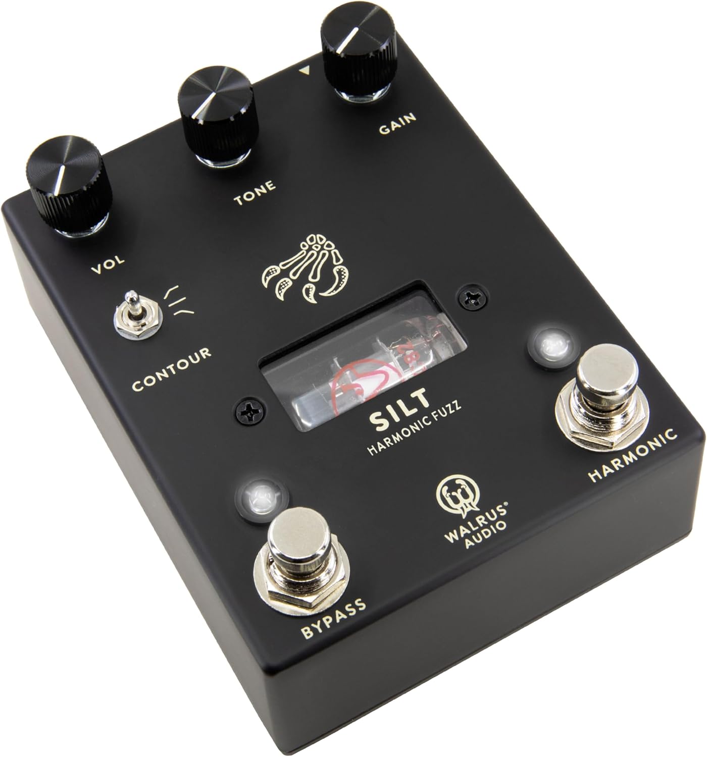 Unearth the Walrus Audio Silt Harmonic Fuzz, a collaborative creation with tube expert Jim Hagerman. Wielding an internal pre-amp tube, the Silt is a two-in-one fuzz that creates massively rich fuzz tones perfect for chords and rhythmic parts or with the press of a switch, adds uniquely harmonic overtones to the signal before hitting the tube. Crafted specifically for those seeking a harmonically rich fuzz experience, the Silt boasts an analog circuit with the distinctive warmth of a 12AU7 tube as its drive section, letting you explore a unique and wild sonic landscape.
