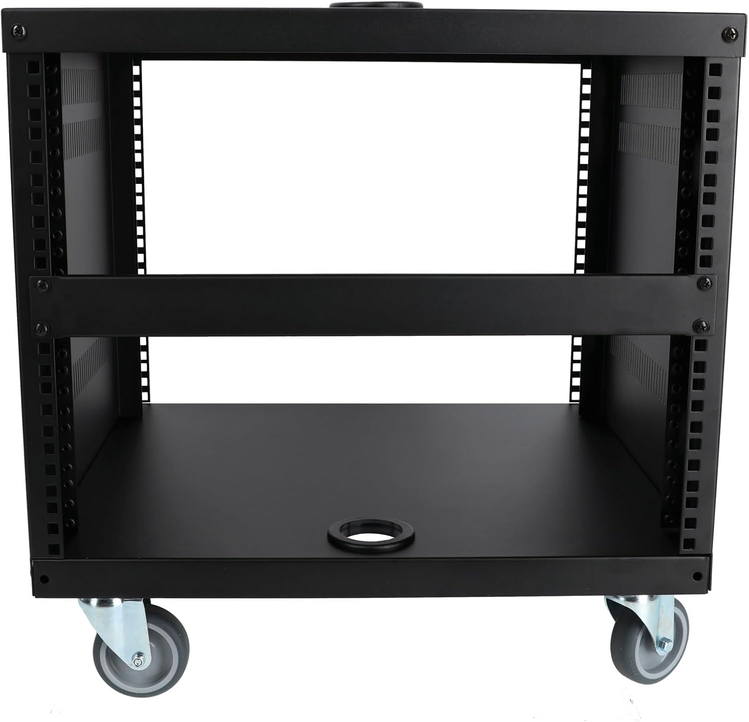 Rockville RR8U 8U Live Sound/Recording Studio Rack Case with Wheels, Reversible Rack Rails, Front & Rear Mounting, Cable Management Ports, 440lb Capacity