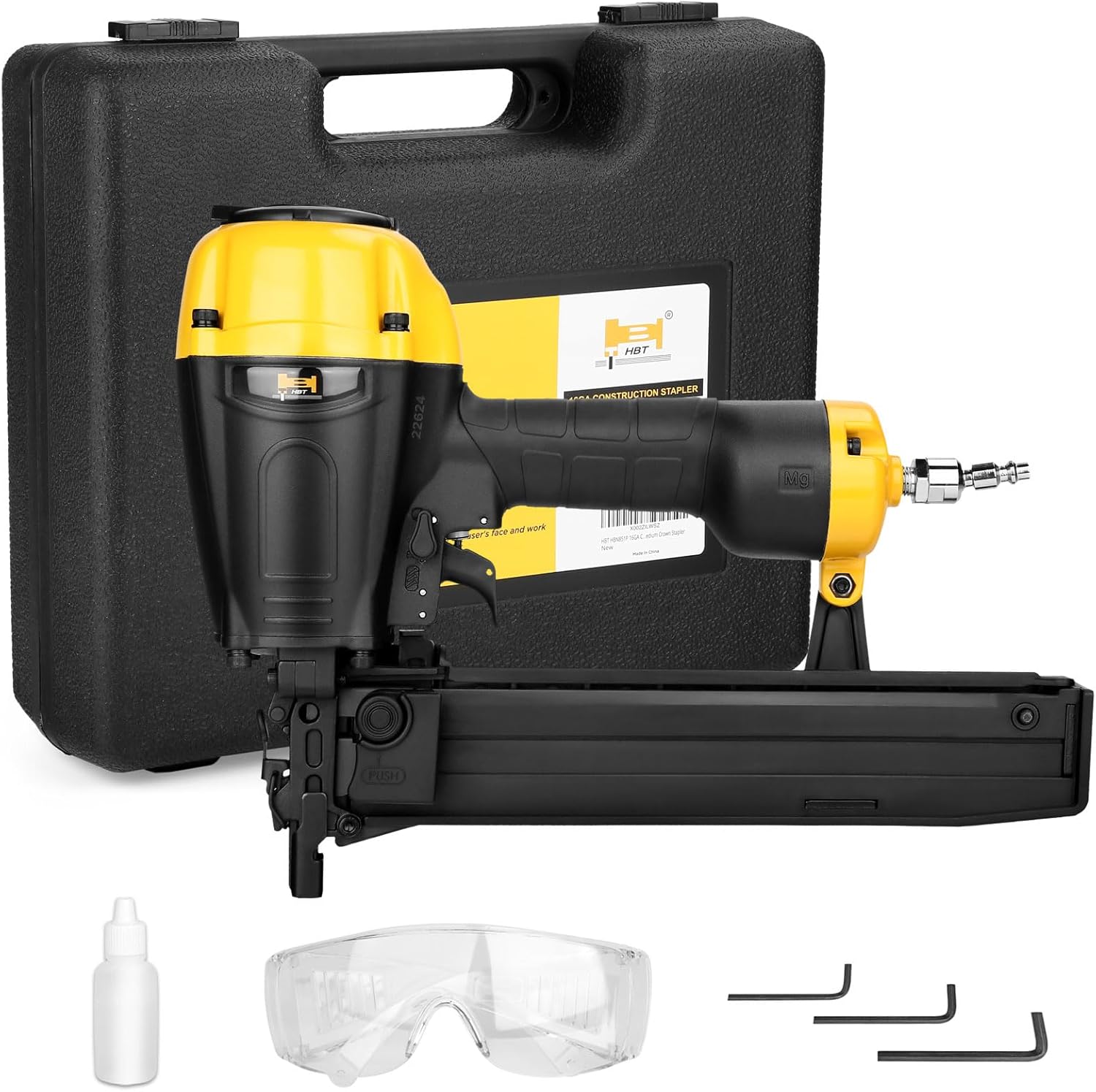 HBT HBN851P 16GA Pneumatic Construction Stapler, 7/16-Inch Medium Crown Stapler Accepts 3/4" to 2" Staples