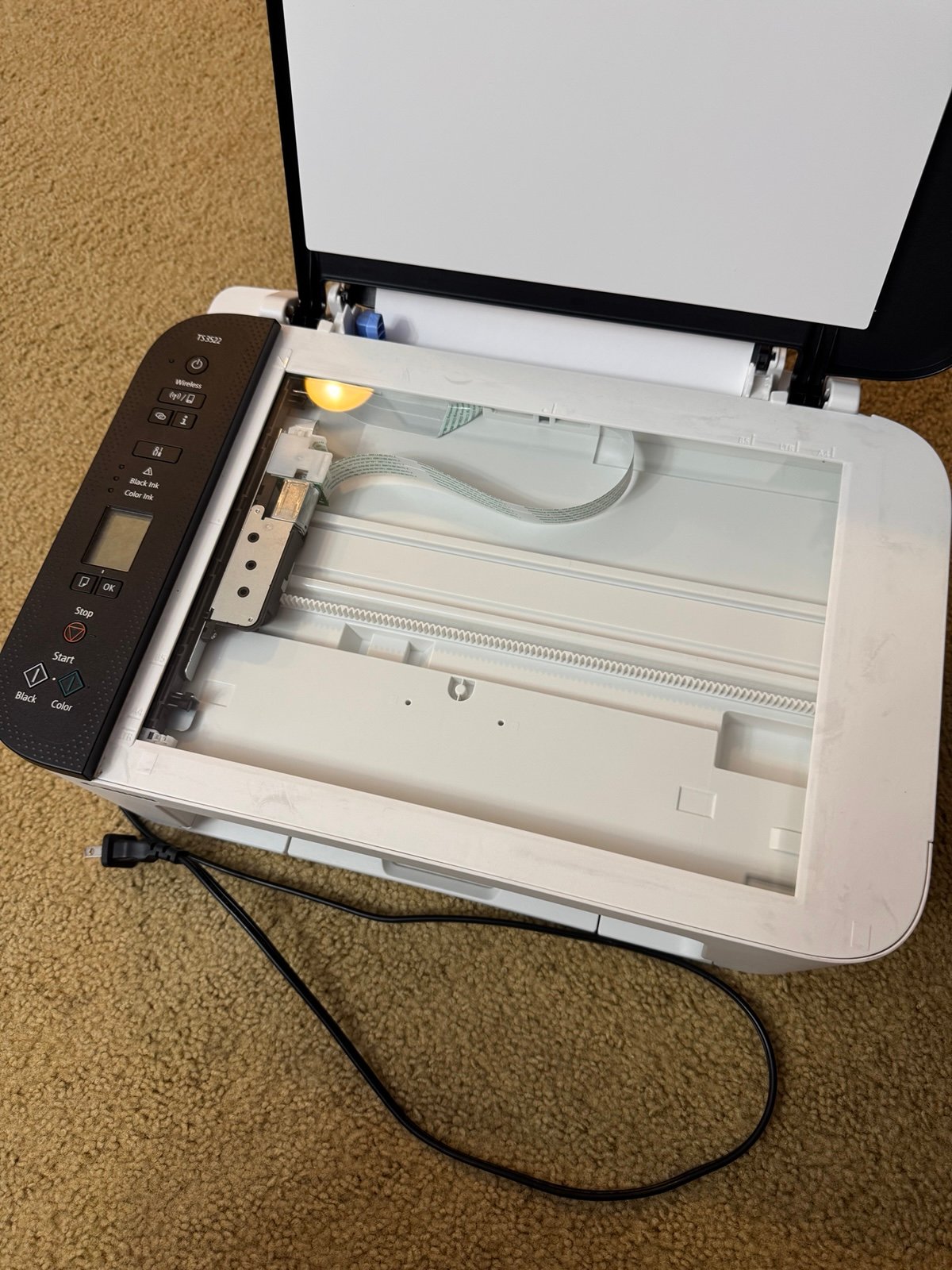 Great condition, no flaws. Test printed a page when I took pictures. Ink cartridges are probably at around 3/4 full, if not more like 7/8. You can get discount off brand ink for this printer via Amazon. Can be connected directly to the source or used with WiFi. Has scanning / copying capabilities. Prints in color and black and white.