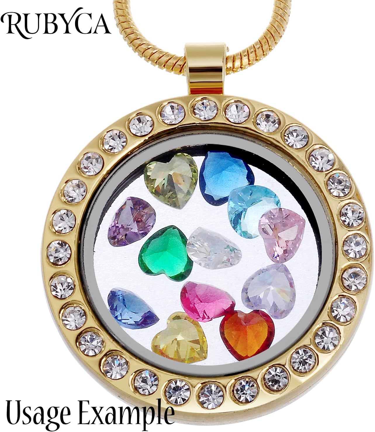 RUBYCA Living Memory Floating Charm Round Glass Locket Pendant Necklace The Memory Locket opens to allow you to put inside your own carefully chosen charms (sold separately) and has a transparent front so everyone can see what means the most to you. Our Floating lockets have a magnetic clasp so even after you put your favourite charms inside, you are able to switch them, add to them or take them out and completely start over. RUBYCA has launched a new model so now you don’t need to worry, the chain is very strong and can’t be easily broken and the locket has a powerful magnet and will not open unless you want it to. Capture and Display memories of all life's moments in RUBYCA’S customizable Floating Locket Necklace, Add charms, beads, pictures, birthstones or any other personal item. You will end up with a unique piece of jewelry which has a real meaning, no one else will have one quite like it. If you’re looking for the perfect gift for about any occasion, Christmas, Birthdays, Valentines... You can’t find any better expression of your love and thought than giving a RUBYCA Living Memory Locket.Comes with Genuine RUBYCA Easy Zip BagRUBYCA Warranty: 60 Days Warranty with a Proof of Purchase. No questions asked refund or replacement will be provided. Please note: * Due to lighting effects, monitor's brightness/contrast settings there could be some slight differences in the color tone of the pictures and the actual item. * Product in the picture may look larger than the actual, please pay attention to sizes