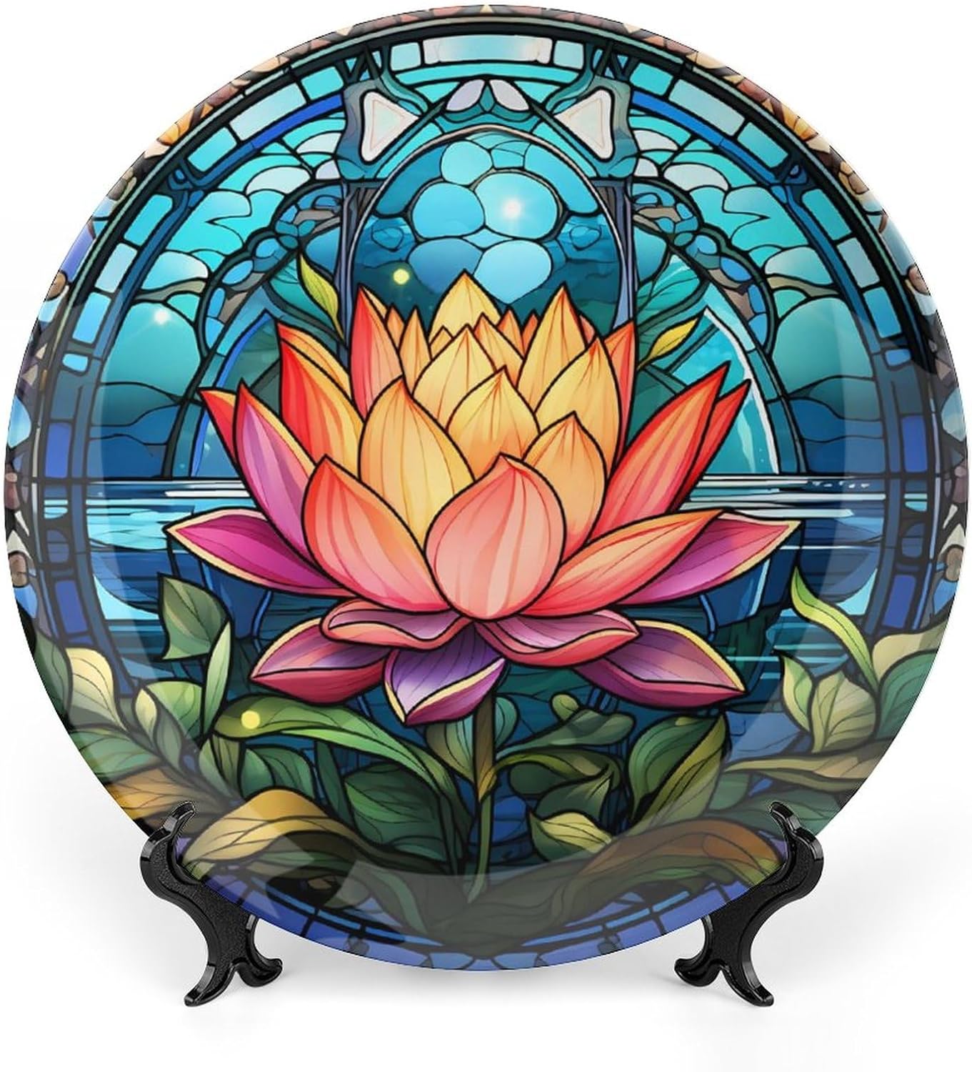 GOKAYS DECORATIVE PLATEDo you feel that your table is monotonous? Then use our decorative plate to add a little fun to the monotony of life.FEATURESSIZE - 8 Inch diameterMATERIAL - CeramicDESIGN - Pink Flower Abstract Stained Glass DesignPACKAGE - 1 x Ceramic Decorative Plate, 1 x Stand, 1 x PothookWHY CHOOSE GOKAYS DECORATIVE PLATES?ADVANTAGEAs Manufacturers We Follow Current Trends and Bring You the Latest Home Fashion. No dye substance harming the health of you and your family, and more than 1300 high temperature fired in the kiln, never fade color. Ideal for placement at home or in the office. Traditional porcelain making technology, fine workmanship. It is a good gift for family and friends.CONVENIENT TO USEOur decorative plate rack for display has 2 ways to use, you can just place the bracket base on a flat surface first, and then put the plate on it, also you can stick the provided pothook at the back of the plate, and then stick the plate on the wall, you can choose the suitable installation method according to the actual situation.OCCASIONOur ceramic plate is a perfect decorative and collection for any niche, table, or mantle at your home. Perfect for your office, home, living room, dining room, playroom, kids room, kitchen, cafe, study, studio, club, bar, and others.IN A SURPRISE FOR YOUR FAMILY AND FRIENDS!It's a perfect gift for any person in your life. You can give it directly to your lover as Mother's Day Gift/Father's Day Gift/Birthday Gift/Christmas Gift/Valentines Day Gift/Anniversary Gift/Wedding Gift/Housewarming Gift/New Home Gift.Start with our funny decorative plate, refresh your rooms!