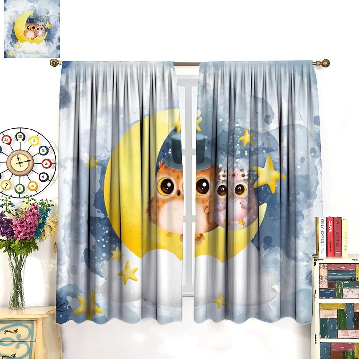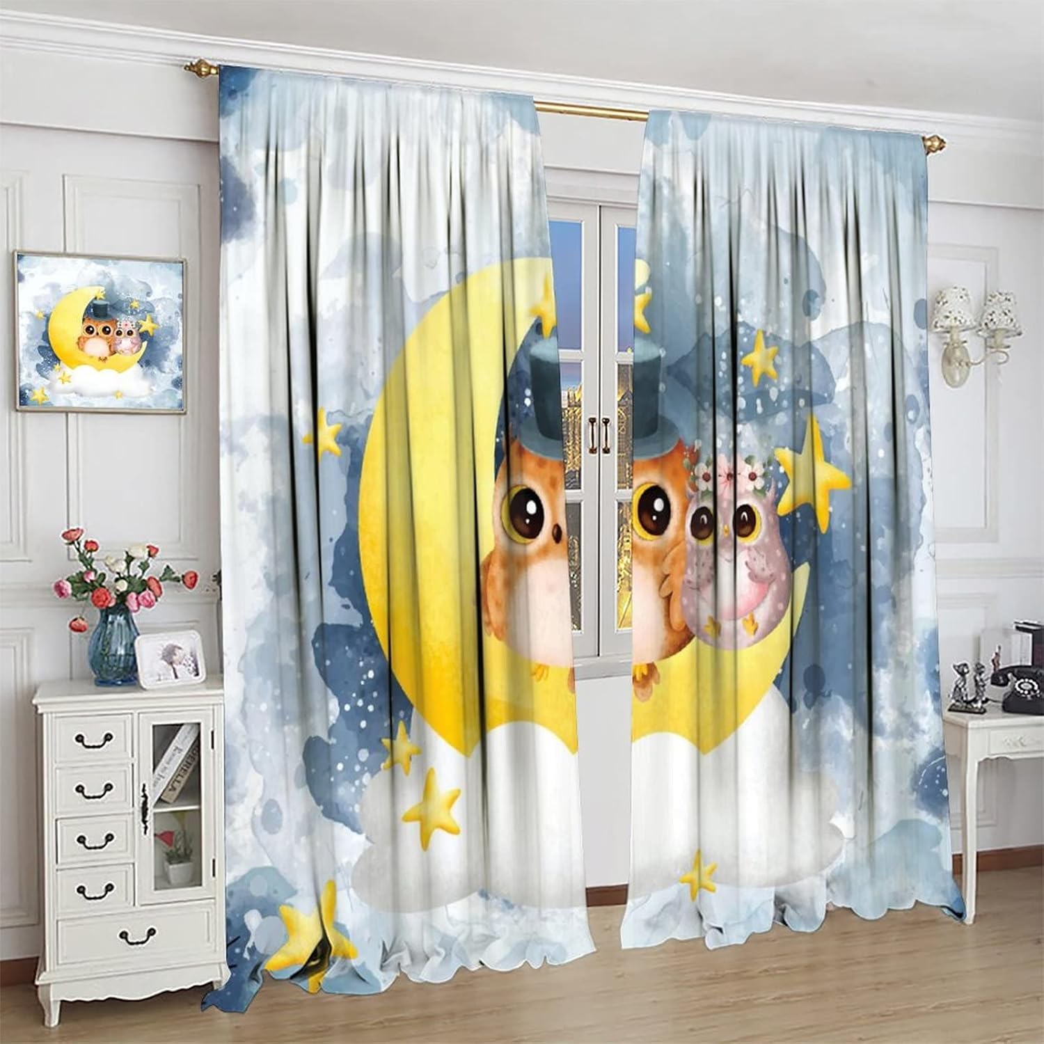 This Watercolor Cute Owl Curtains can block out 85%-99% sunlight and UV ray ( Darker colors work better), perfect for late sleepers and afternoon naps. Our energy saving curtains insulate against summer heat and winter chill to balance your room temperature, reduce outside noise .This Watercolor Cute Owl Curtains liven up your indoor or outdoor spaces with a sense of airiness and beauty.These Watercolor Cute Owl Curtains are suitable for the bedroom, living room, dining room, infant room, kids room, office or other public place.Material:Polyester high quality fabric curtains, warm and interesting, beautifully designed.Kindly Remind:- Don't use sharp things scratching curtains.- For proper fullness panels should slightly larger than the window size the width of your window.- 24 Hours customer support.- As different computers display colors differently, the color of the actual item may vary slightly from the above images.