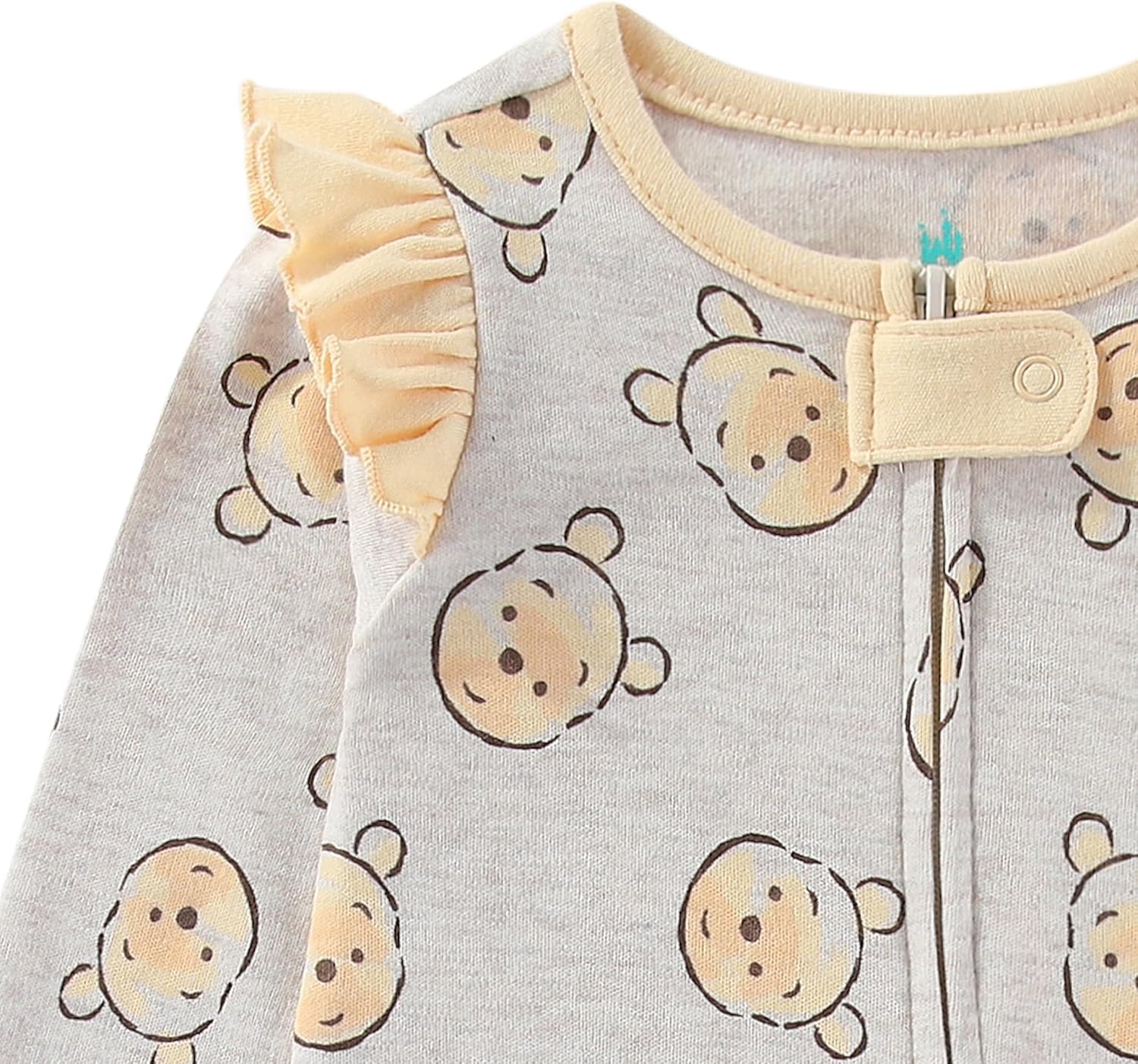 Wrap your little one in cozy Disney charm with our Officially Licensed Disney Winnie the Pooh Baby Girls Long Sleeve Footies Coverall Romper with Headband, a must have baby outfit for parents searching for Disney baby clothes, Winnie the Pooh outfits, and infant sleepers that are as adorable as they are comfortable. This beige baby girl footie features an allover Winnie the Pooh print inspired by the Hundred Acre Wood, plus cute 3D Pooh ears and a smiling Pooh face on the feet for an extra sweet touch little fans will love. Paired with a matching beige bow headband, it becomes a picture ready outfit for newborn photos, milestone moments, first birthdays, baby showers, holiday photos, stroller walks, and everyday snuggles. Made from a soft, breathable, durable cotton blend fabric, this long sleeve coverall keeps your baby warm while staying gentle on delicate skin. With easy, machine washable care and available in baby girls newborn clothes sizes 0–3 months, 3–6 months, and 6–9 months, it is the ideal infant coveralls, baby sleepwear, and Pooh bear baby present. Whether it is for your daughter, granddaughter, or looking for Winnie the Pooh baby present, this charming footie pairs effortlessly with Winnie the Pooh socks, Winnie the Pooh blankets, Winnie the Pooh shoes, Winnie the Pooh nursery accessories, and Winnie the Pooh baby essentials, because every day becomes a little sweeter with Pooh by her side.