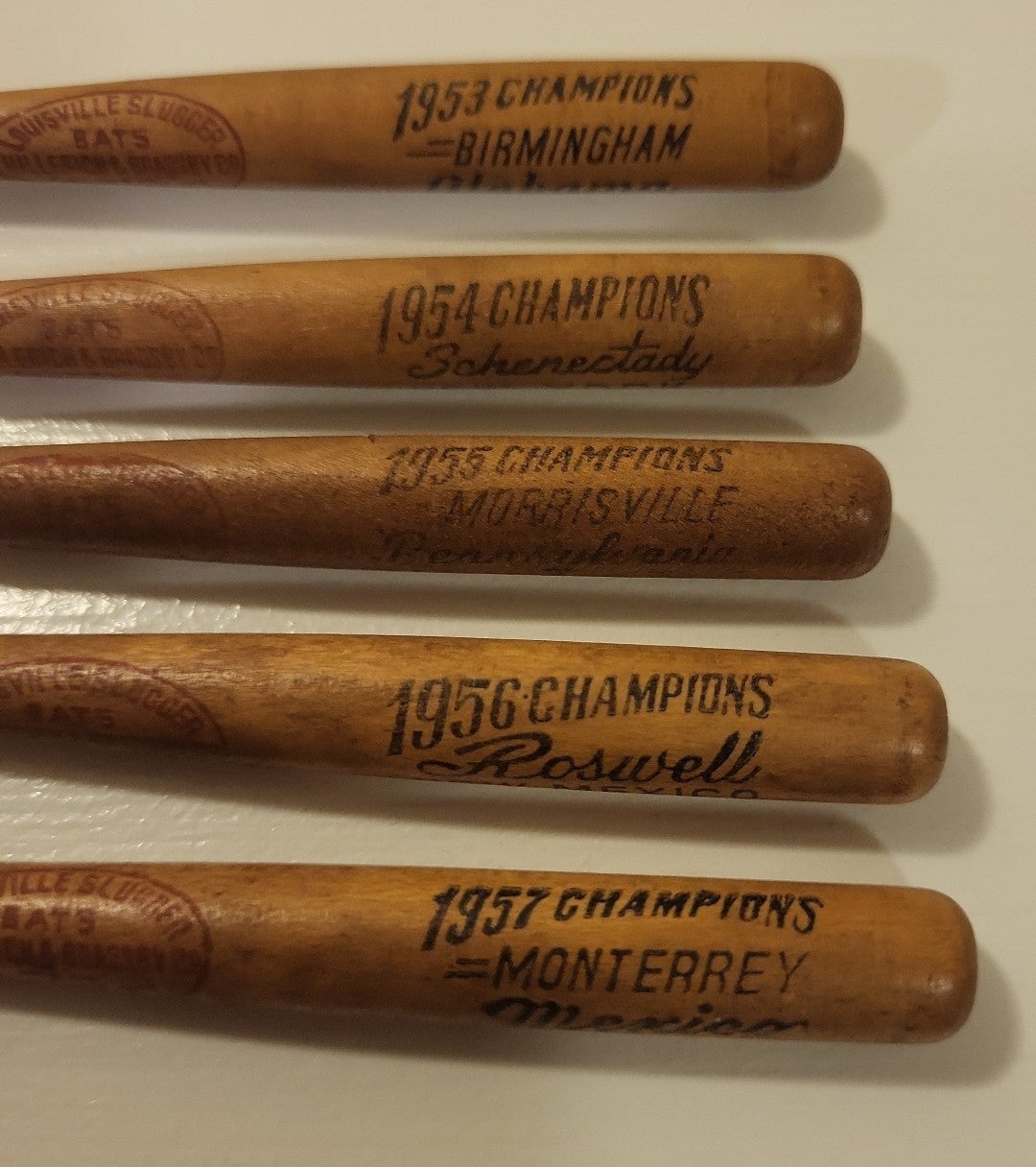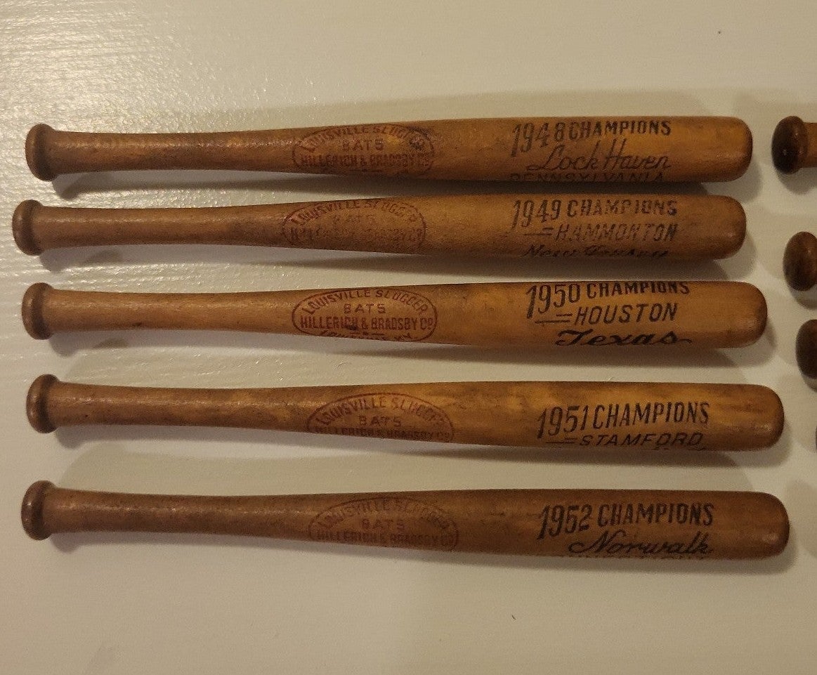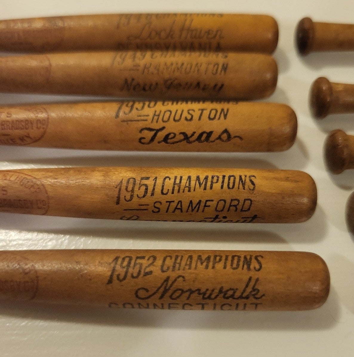 These are 4.25 inches, they commemorate the team that won the Little League World Series baseball championships from 1948 to 1957. Lock Haven, PA, Hammonton, NJ, Houston, TX, Stamford, CT, Norwalk, CT, Birmingham AL, Schenectady, NY, Morrisville, PA, Roswell, NM, and Monterrey, Mexico. The very first Little League Championship was 1947. These are from years two through 11. These should probably be in a museum. Free shipping!