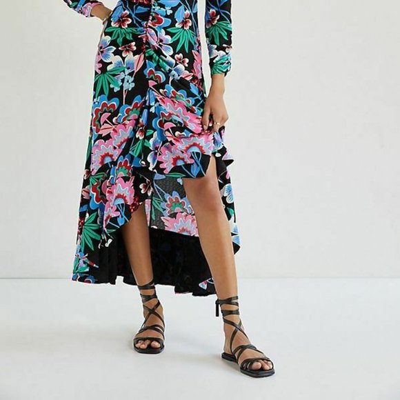 Make summer memories in this occasion-ready midi dress, where vibrant florals and a playfully ruffled hem offer equal parts sweetness and sophistication.