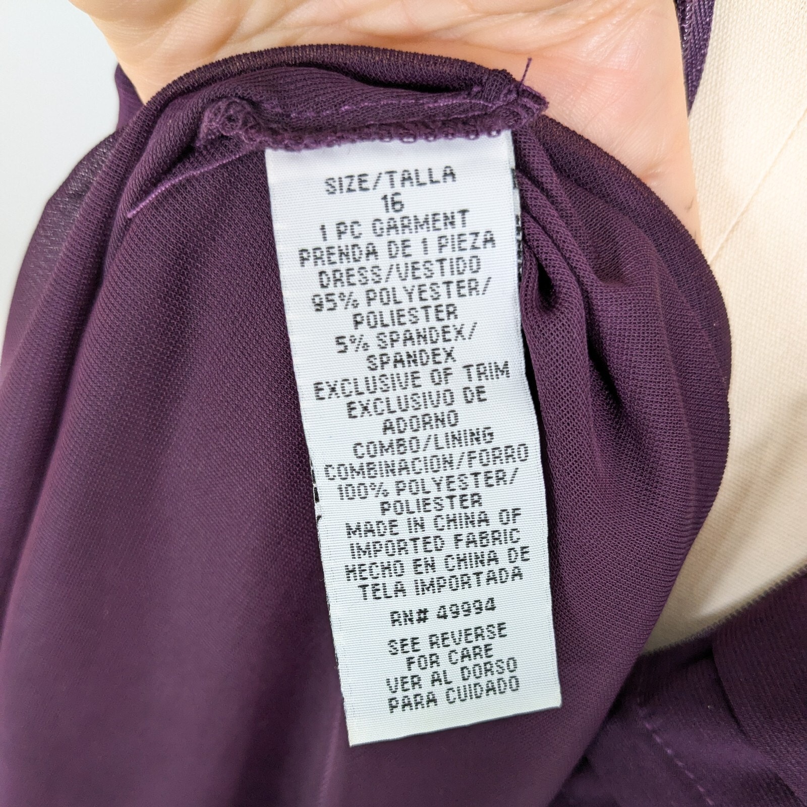 Fit and flare mermaid prom dress maxi gown from R&M Richards, size 16. Purple knit, sweetheart neckline with empire waist, rhinestone accents, drop waist with mermaid flare, slit in center of bottom front. Ideal for classic, Y2K, elegant, movie star, and red carpet vibes.