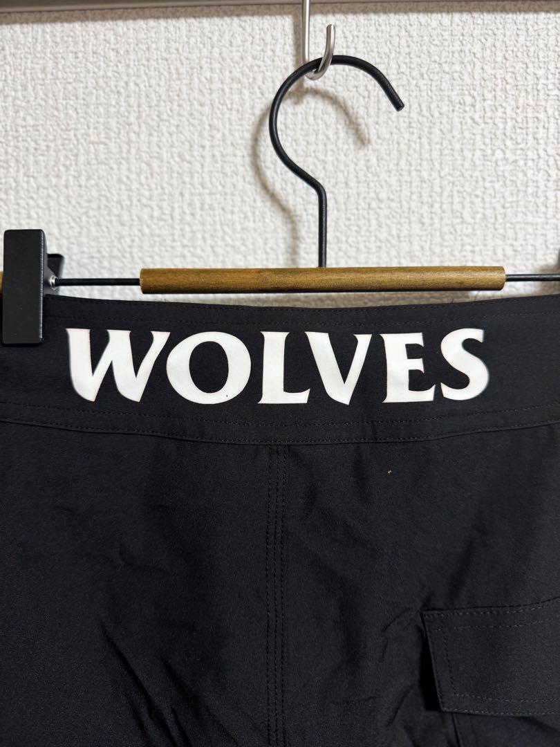 Black and camouflage patterned shorts with WOLVES logo stage shorts