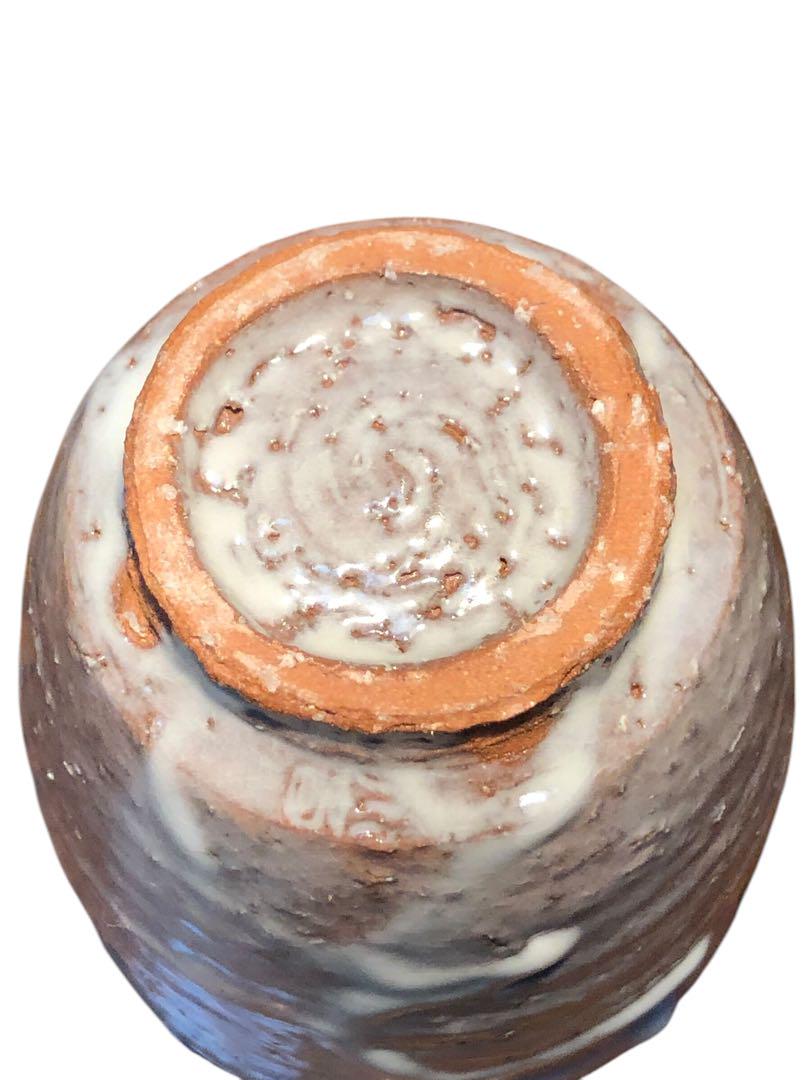 This is a Hagi ware piece fired with a straw ash glaze. Hagi ware is fired at a low temperature. No synthetic glaze is used. The difference between synthetic and natural glazes lies in the size of the crazing and the amount of negative ions emitted. Fired in an electric kiln at 1260 degrees, it is a soft, warm, and soothing pottery.