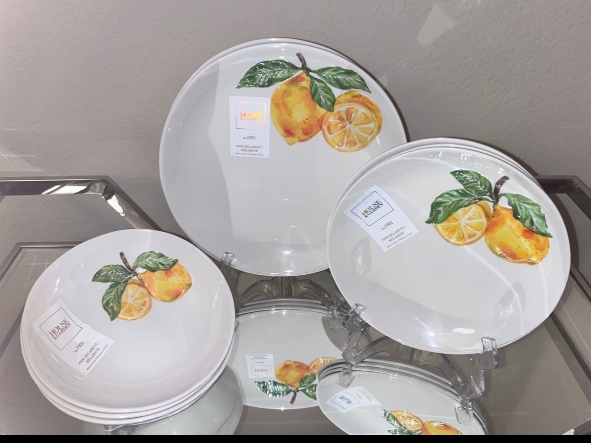 12- NWT HOUSE & GARDEN EMBOSSED LEMON DESIGN MELAMINE PLATES BUNDLE