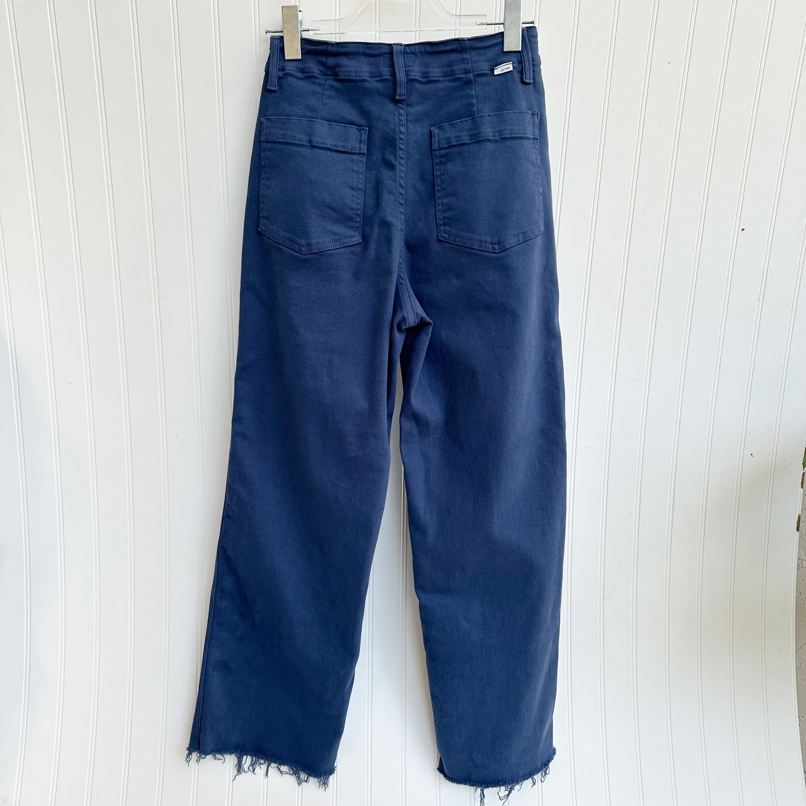 Mother The Major Zip Sneak Fray Insignia Blue High Rise Straight Jeans 25