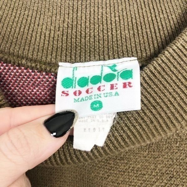 Awesome vintage dark green mock/Crewneck sweater by DIADORA. Beautiful patriotic design. DIADORA America. Mix of stitched in print and embroidery. Back has the DIADORA logo. Some slight wash wear since it is vintage but overall good condition! Mens or womens size medium.