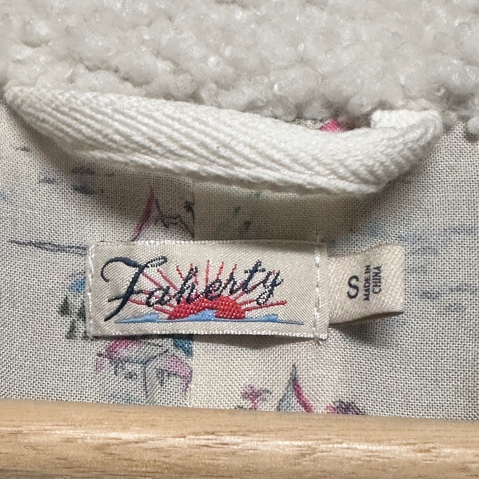 FAHERTY Montana Moto Coat Mountain Buffalo Holly Plaid Women’s Size Small Red Classic woodswoman plaid pattern Plush winter-white high-pile fleece