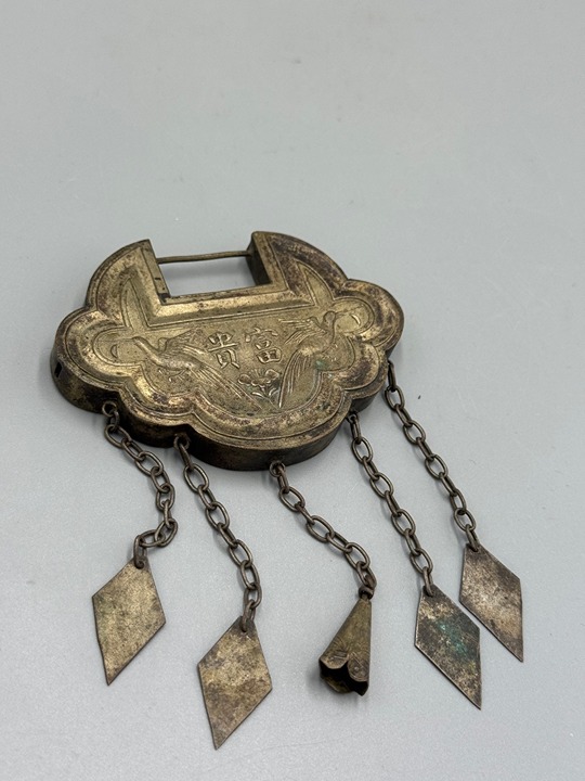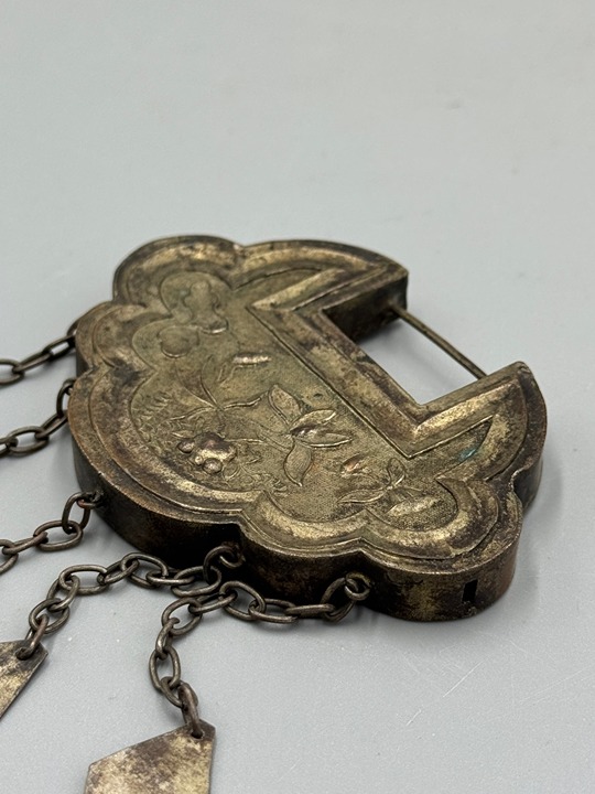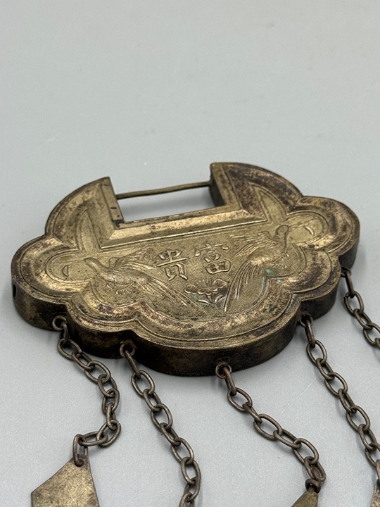 Antique 19th C. Chinese Phoenix Silver Padlock Lock Pendant Amulet 3 1/4''