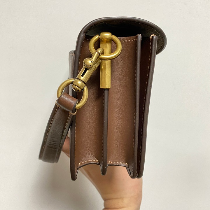 Multi-function pocket inside Magnetic snap closure, lined Center zip pocket Removable strap, 57cm length from shoulder to body (2-way design for shoulder and crossbody wear) Fits a Coach long wallet