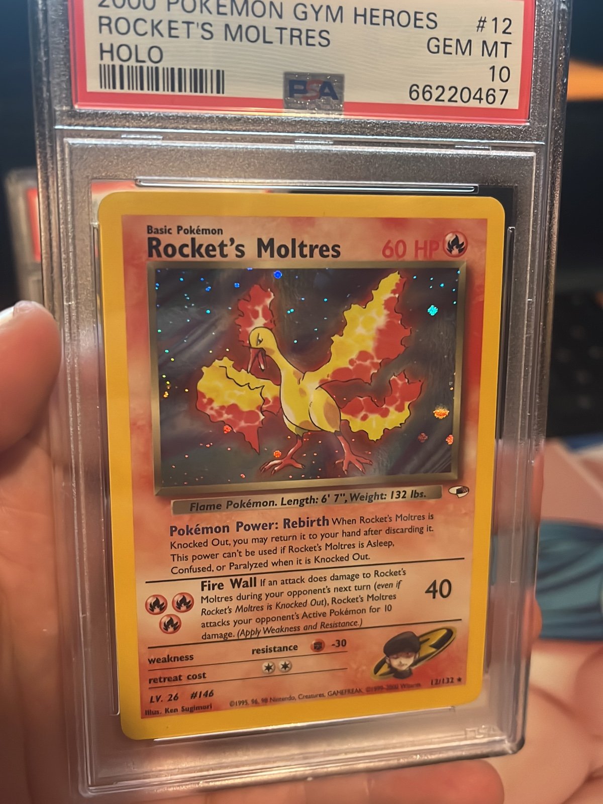 BEAUTIFUL PSA GEM MINT 10 ROCKET’S MOLTRES I KNOW YOU WANT TO COME STEAL THIS ONE BACK FROM TEAM ROCKET