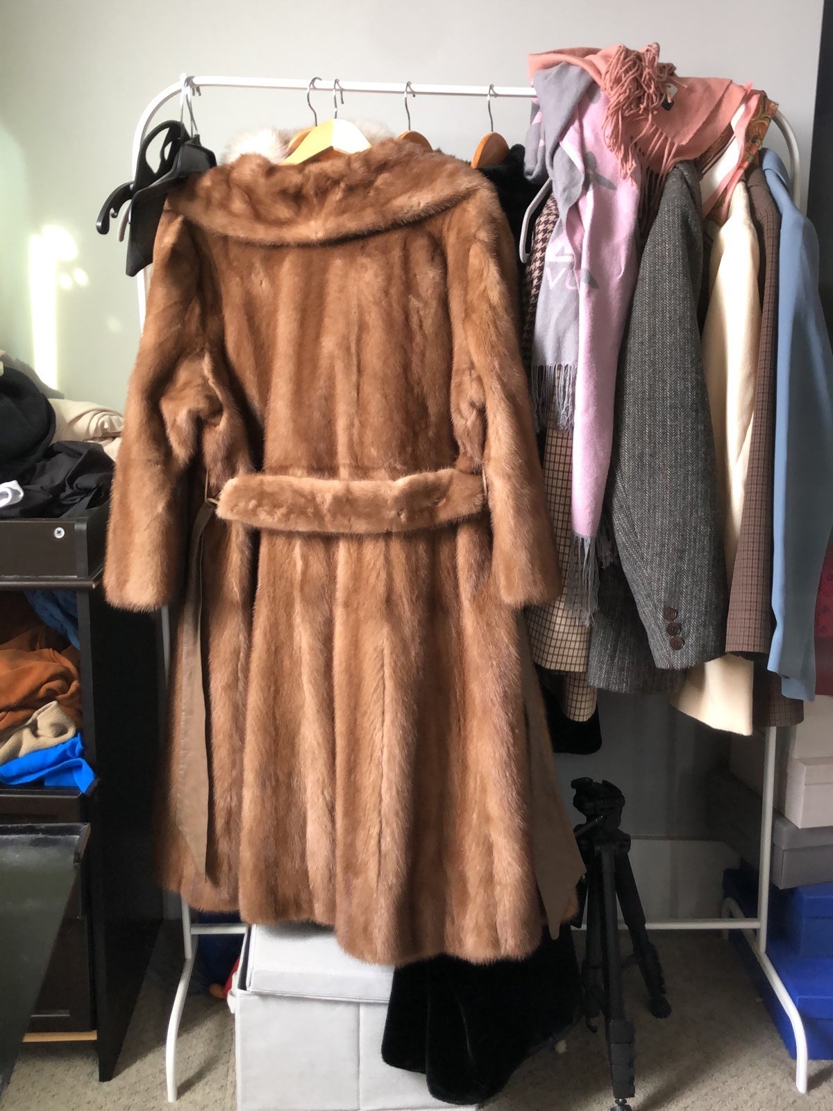 Vintage genuine fur coat that is preserved very well. Oversized robe style with fur belt.