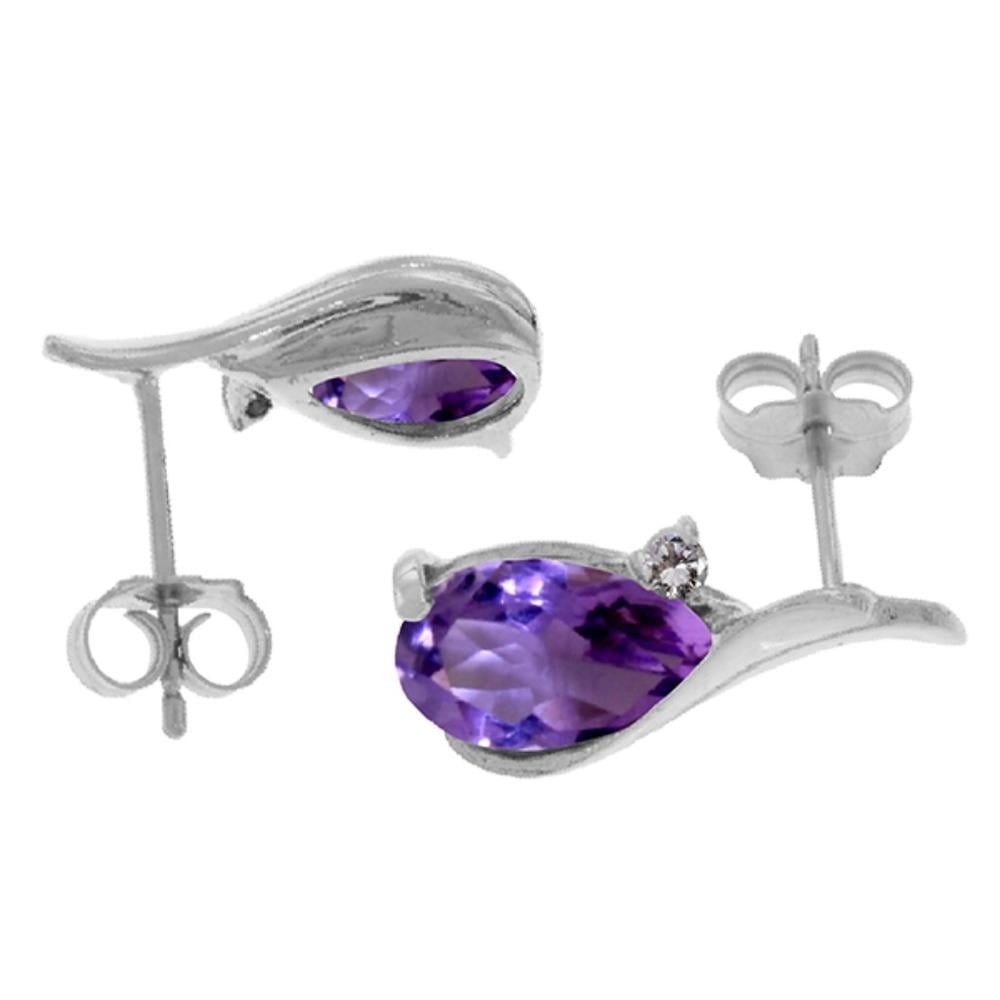 14K. SOLID GOLD STUD EARRING WITH DIAMONDS & AMETHYSTS (White Gold)