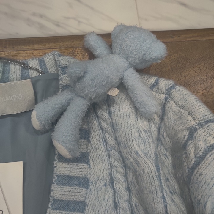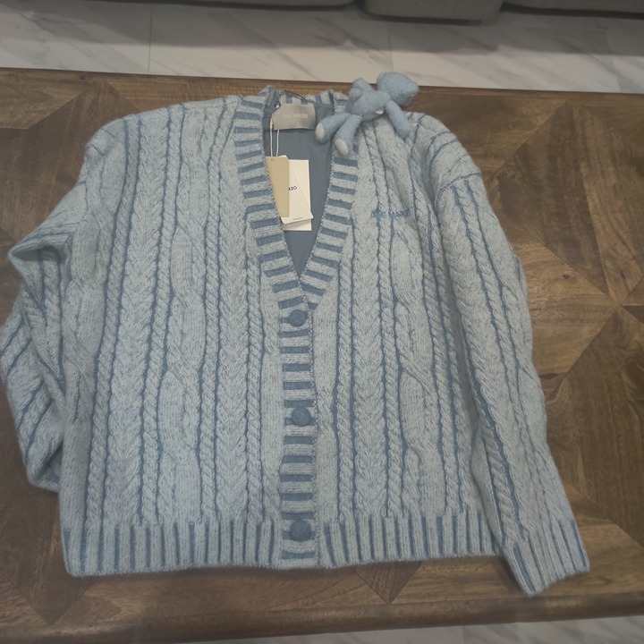 13DE MARZO Bear Yarn Weave Cardigan Blue size L New oversized fit