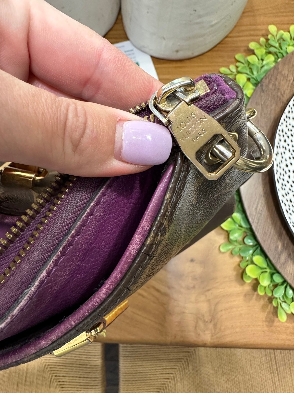 LOOK AT PHOTOS!!!!! Bag has cracks. It's authentic and verified through Mercari. There are rubbing and crocks to canvas! Wear on the bag! It's still usable and has lots of life left!!!! Beautiful bag but in fair condition. Has shoulder strap.
