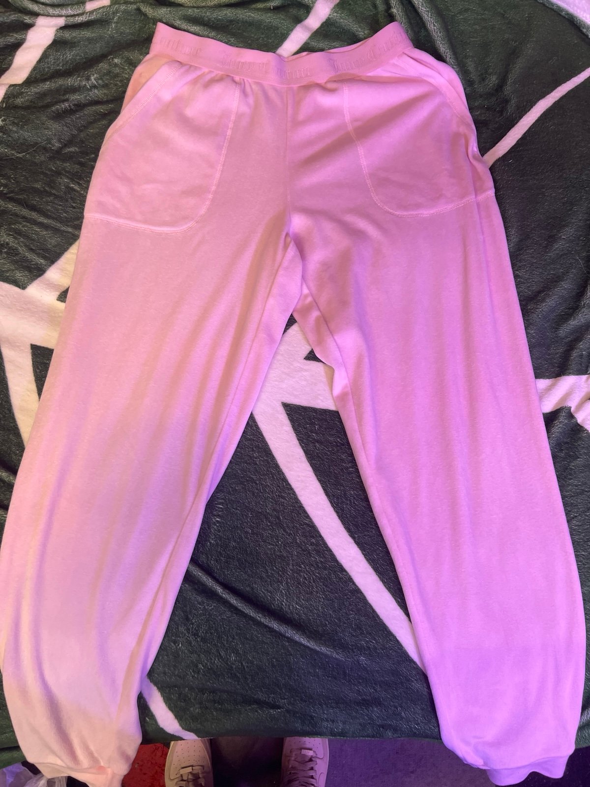 Bottoms have an elastic waist band with cuffed ends