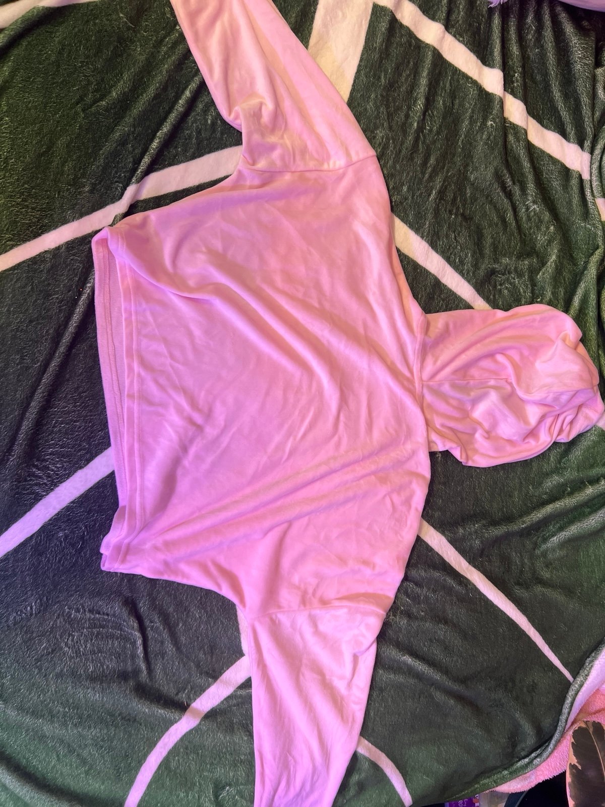 Top is a cropped fit long sleeve with a hood and 2 drawstrings