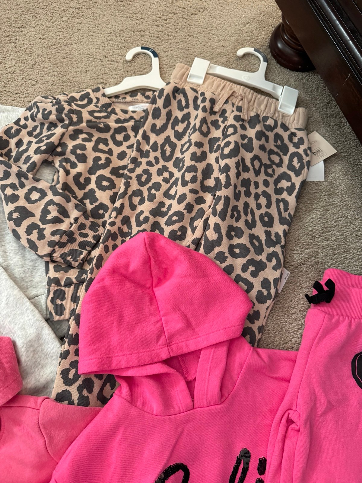 All have adjustable drawstrings except leopard print set and Barbie set