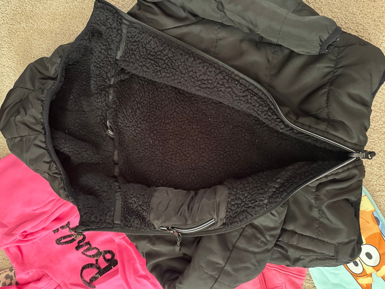 Black jacket is used but good condition and has Sherpa inside