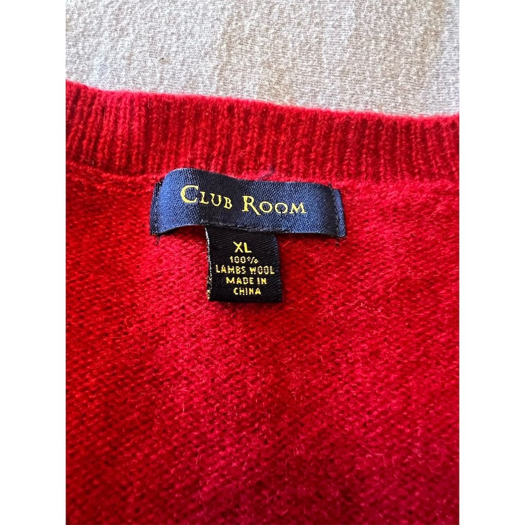 Wrap yourself in warmth and style with this Club Room men's pullover sweater. Crafted from 100% lambs wool, this red V-neck sweater in size XL offers a cozy fit perfect for any occasion. Its vibrant color adds a pop of personality to your wardrobe, making it a versatile choice for both casual outings and more formal gatherings. Pair it with your favorite jeans or dress pants for a polished look. This pre-owned sweater is in excellent condition, looking clean and free of stains or flaws. It's dry clean only and has not been recently cleaned. This item comes from a smoke-free and pet-free home.