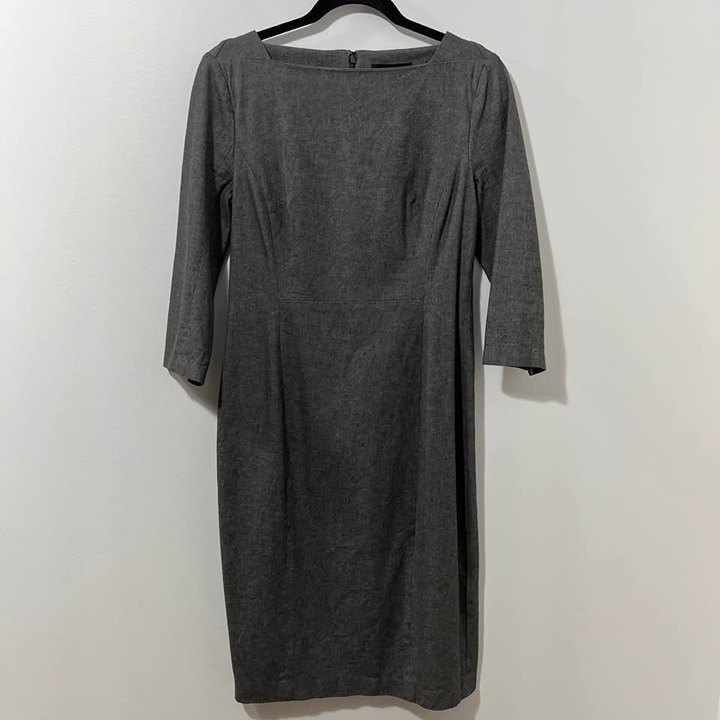 Sleek, polished, and effortlessly flattering — this Banana Republic Gray Midi Sheath Dress is the ultimate wear-anywhere piece.