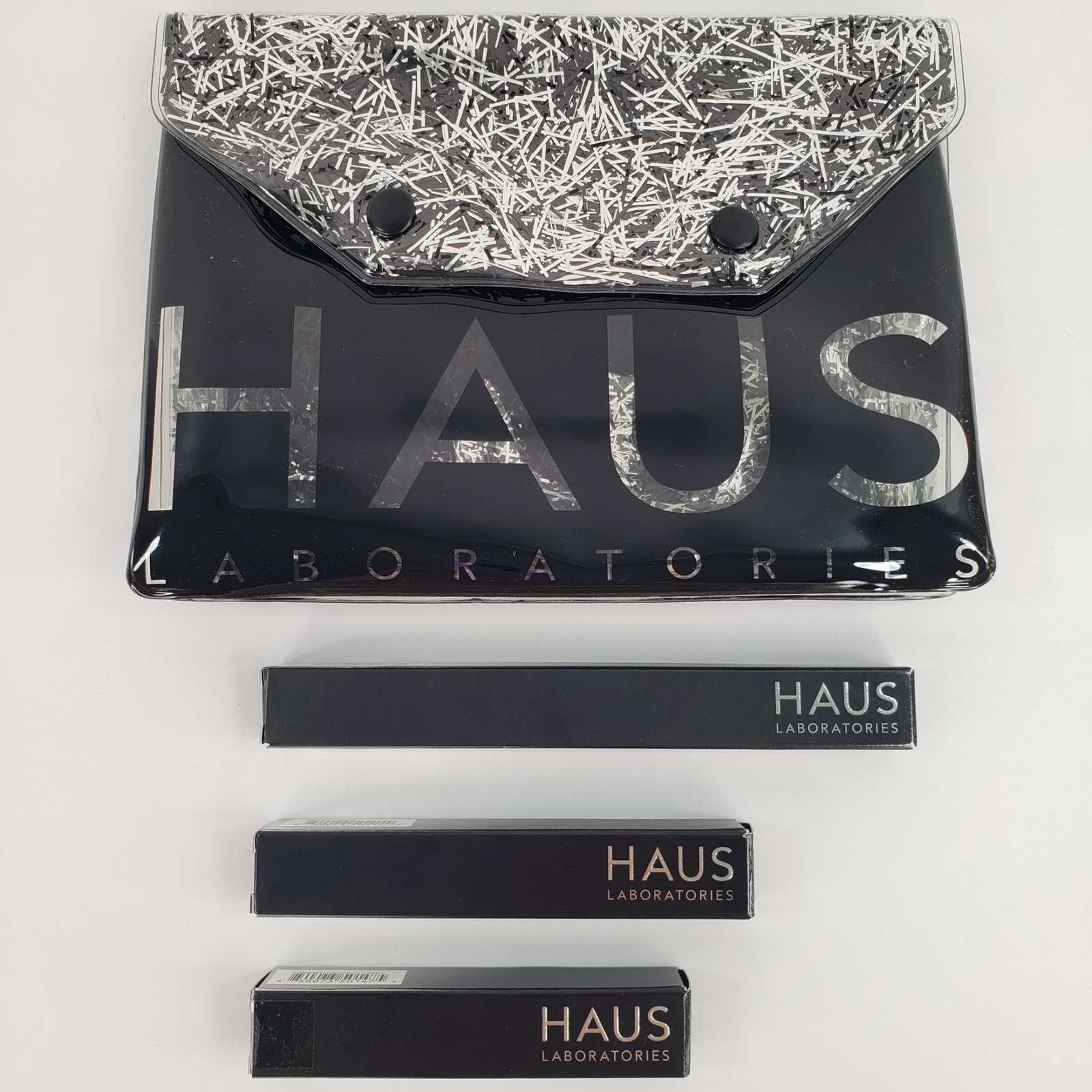 HAUS Laboratories Cosmetic Bag, Black & Silver, Snap Closure