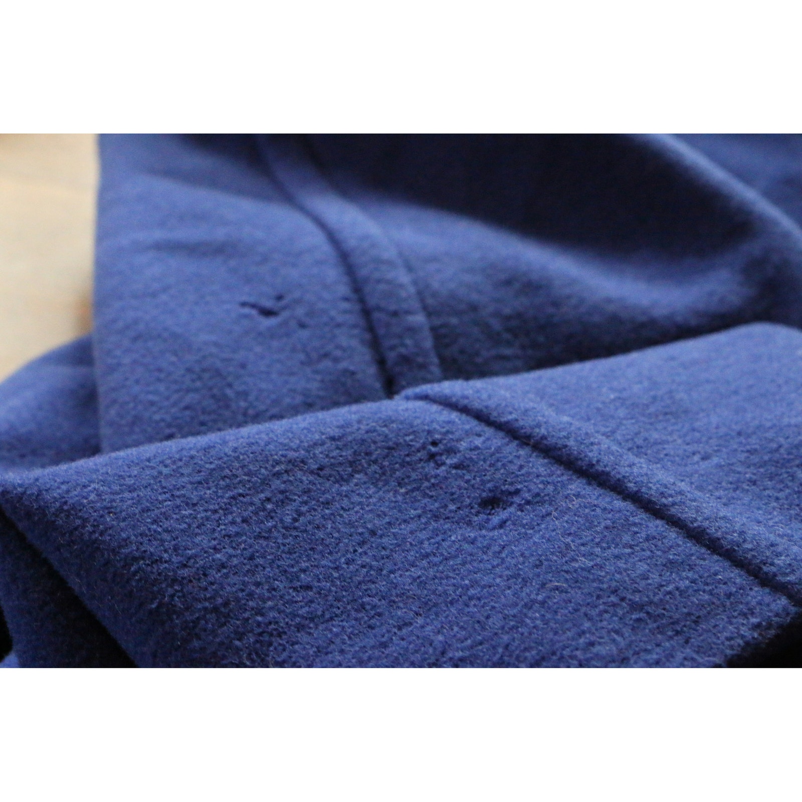 1980's Full length, oversized style wool coat in women's size sm to lg. Large, oversized shawl style collar with single button closure. Pockets at the waist and unlined. Fabric is a soft wool blend in a gorgeous bold cobalt blue. In excellent vintage condition with just a few small moth bites to the fabric ~ See closeup picture for this minor flaw.