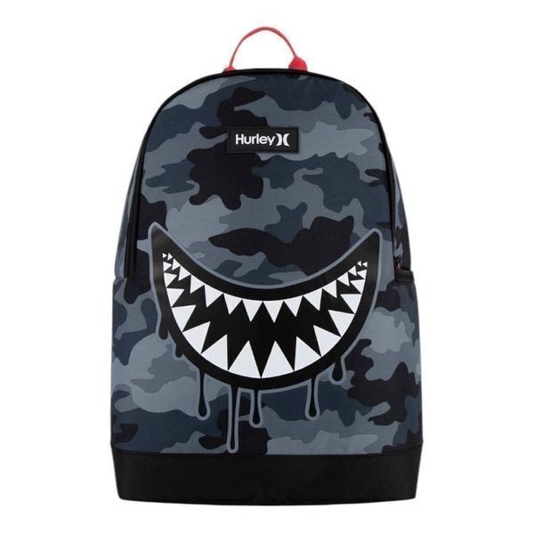 This listing is for a NWT's Hurley Dark Grey Camo Shark Backpack. The backpack is your essential lightweight day pack for everyday. It features a large exterior zipper pocket for easy access and convenient carrying. The main compartment can hold a laptop or tablet up to 15. 6" and a large mesh-face padded back panel keeps everyday toting comfortable. A cool, ocean-loving shark bite graphic is printed across the front for head-turning looks.