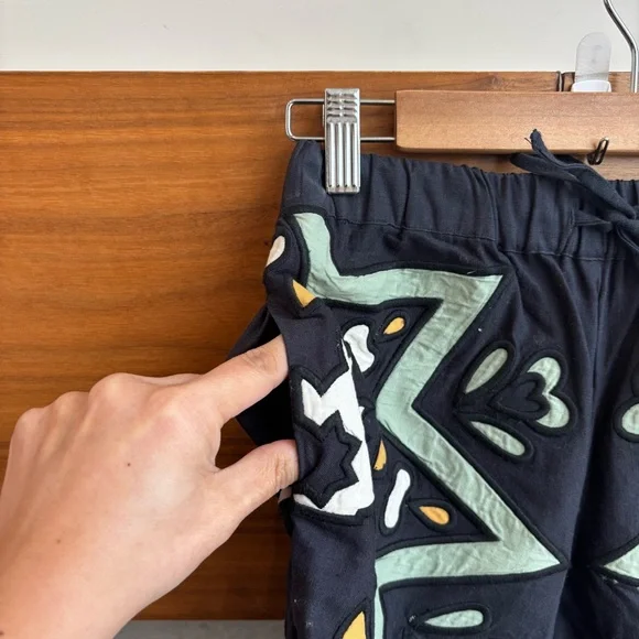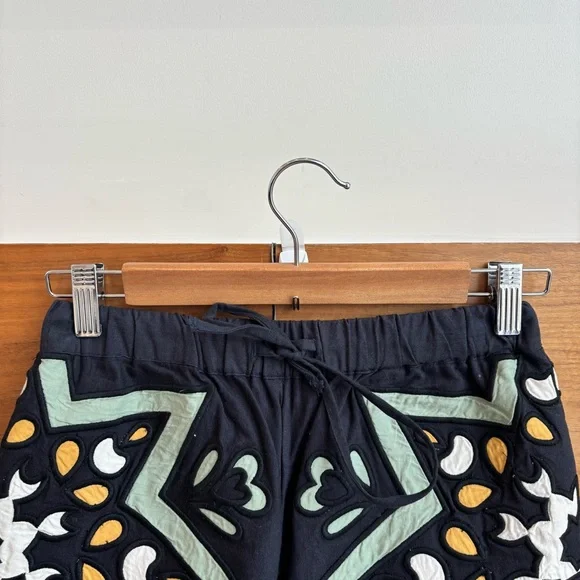 The Kaia kaleidoscope shorts feature lace trim detailing, kaleidoscope applique and elasticated drawstring waist. Crafted from organic cotton.- self-88% cotton, 12% linen - applique-100% GOTS cotton (organic cotton) - elasticated drawstring waist - model is 5'10'' and wearing a size S - Made in IndiaSize: XSColor: Sage Condition: Excellent Preowned conditionSmoke free home & pett free