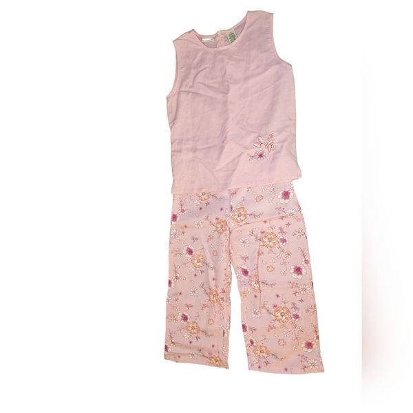 Vintage Cherokee pink linen floral print 2 piece outfit