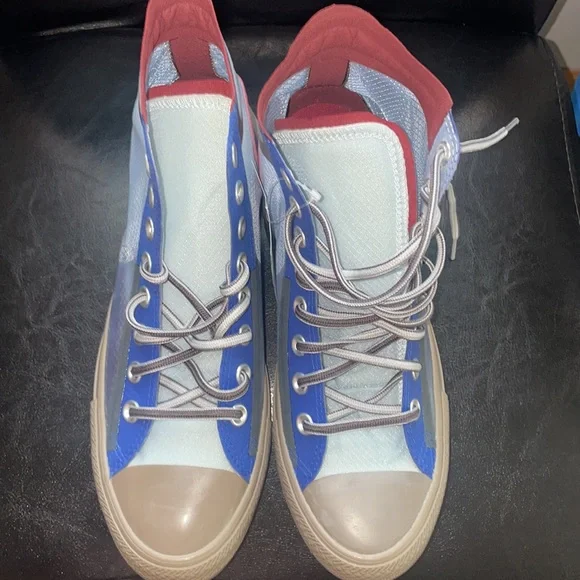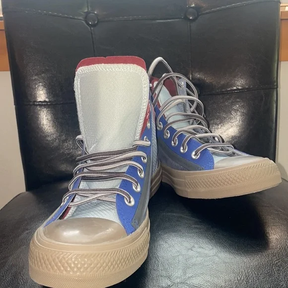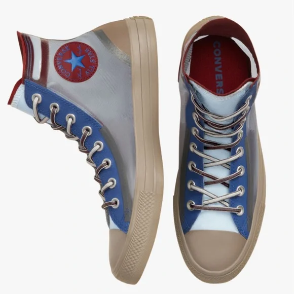 These Chucks Combine The Classic Features You Know And Love With Translucent Panels, Saturated Colors And Round Two-Tone Laces.The Converse Chuck Taylor All Star High puts a utilitarian spin on the court-bred icon. This edition revises the template with a translucent textile upper in a Photon Dust hue, hiking-inspired laces and tape details. A dual-colored All-Star ankle patch, toe cap and tone-on-tone heel badge retain archival style. The sneaker keeps the vulcanized rubber sole and Waffle tread design. Hiker-Inspired Details And Modern Colorblocking Come Together In Rugged Outdoor Style. These Chucks Combine The Classic Features You Know And Love With Translucent Panels, Saturated Colors.