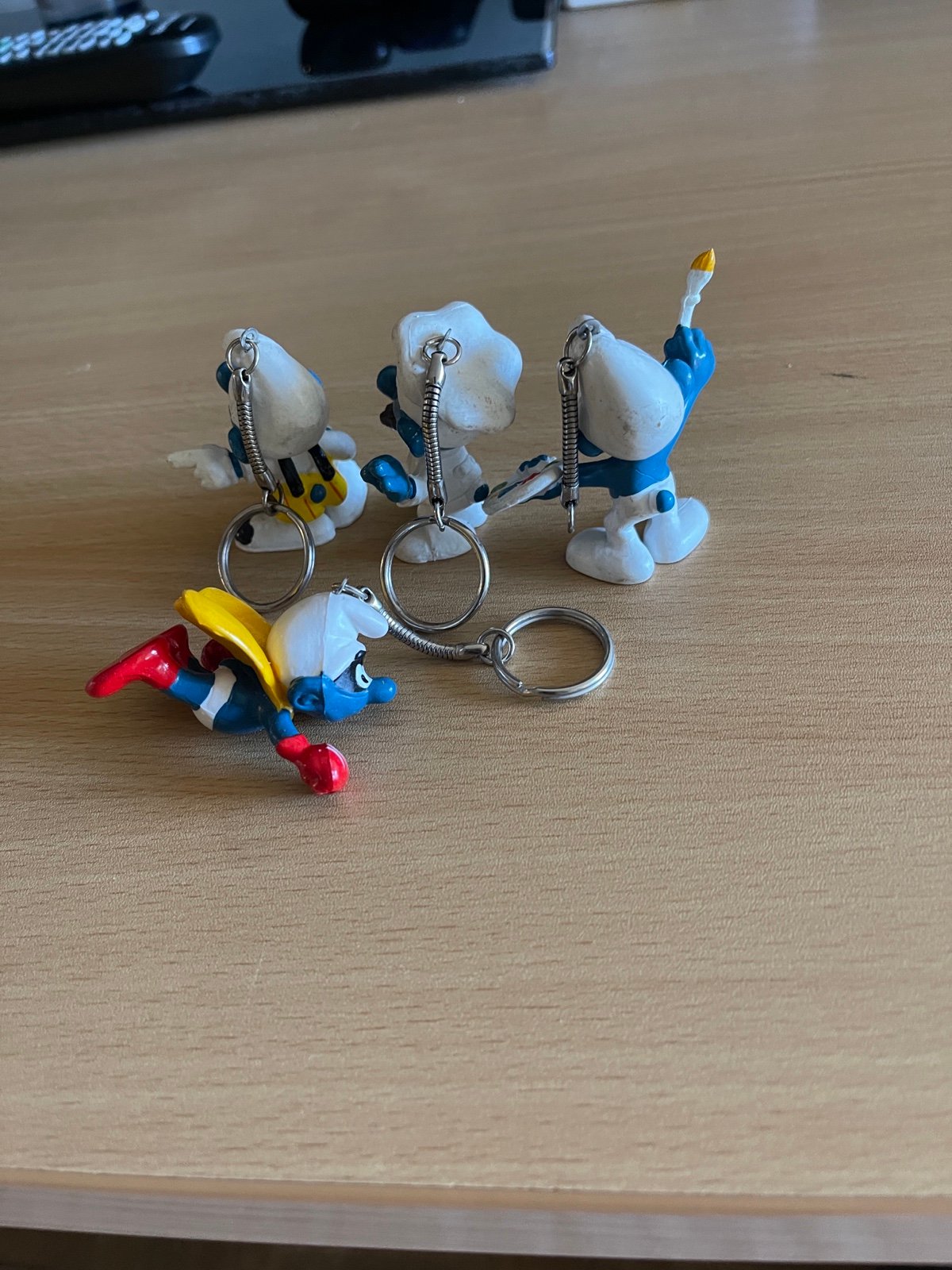 Delight your child or your nostalgia with this charming Smurfs keychain set. Perfect for fans of the beloved characters.
