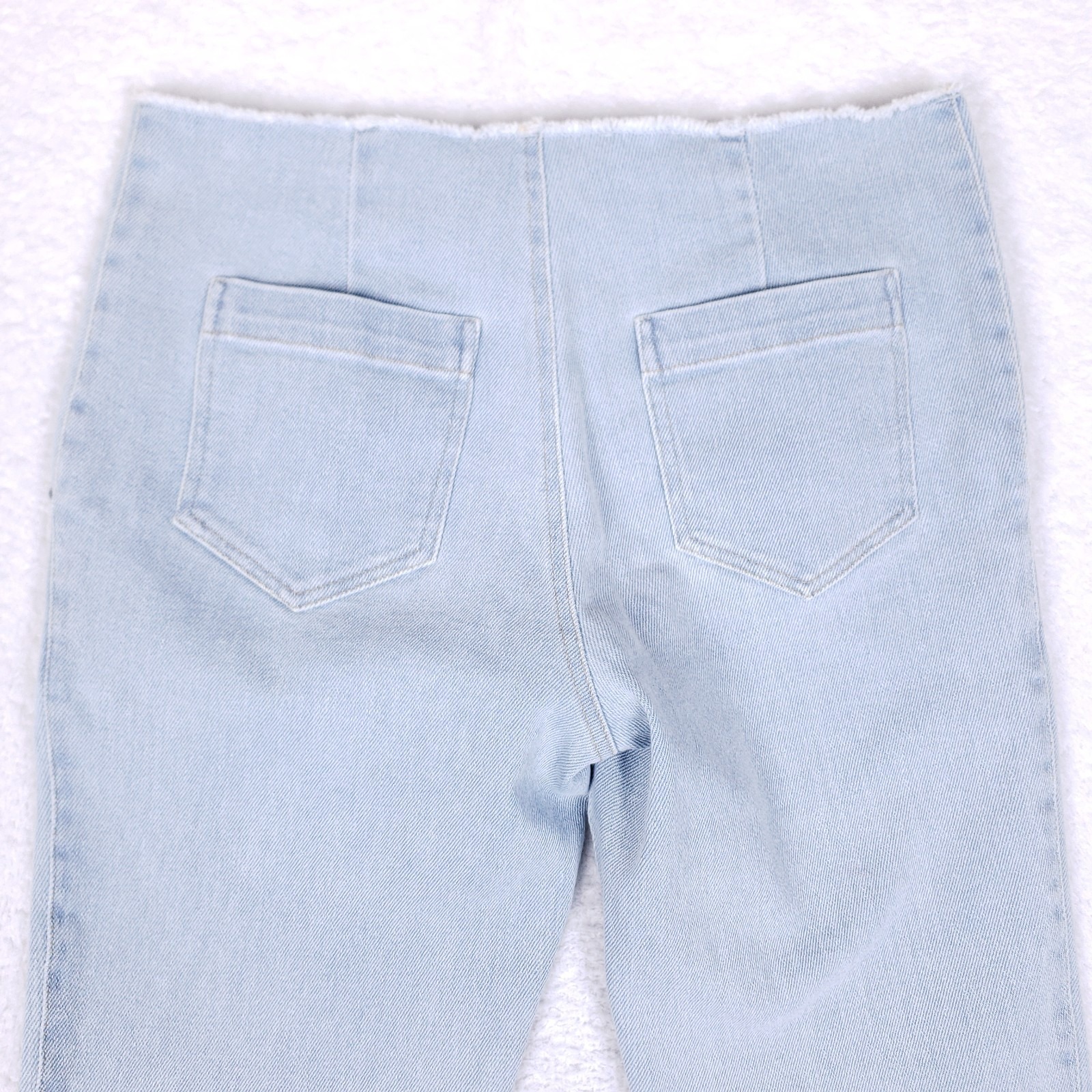 Ships fast! These Naya Rea High-Waisted Fringe Hem Jeans blend runway design with relaxed edge. Crafted from 100% cotton denim, they feature raw edges, a sculpted flare leg, and frayed hems for a bold, fashion-forward look. Perfect for modern minimalist styling.