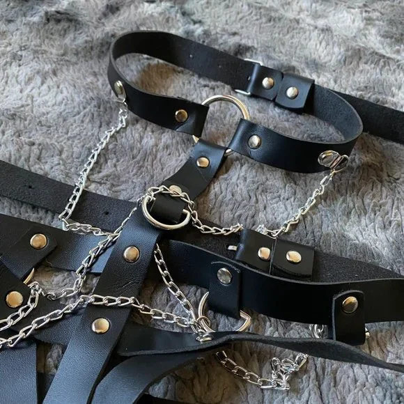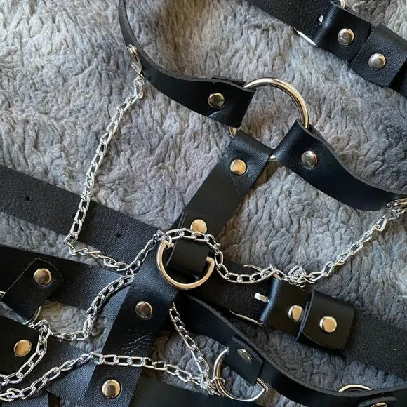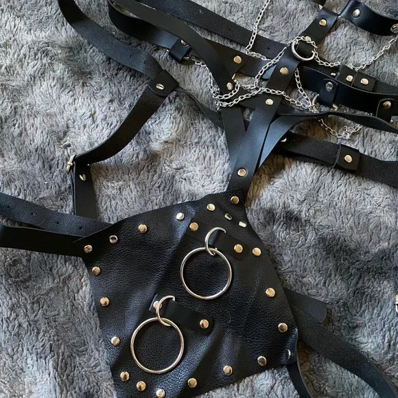 All locked up and nowhere to go! The Locked Up Harness Top is made of premium PU Leather that’s vegan and ultra soft and lightweight for easy all day/night wear. Fully adjustable neck and back belt closures for best fit!Yes we bundle!Littleblackdiamond little black diamond dollskill dolls kill iheartraves i heart raves killstar igirl