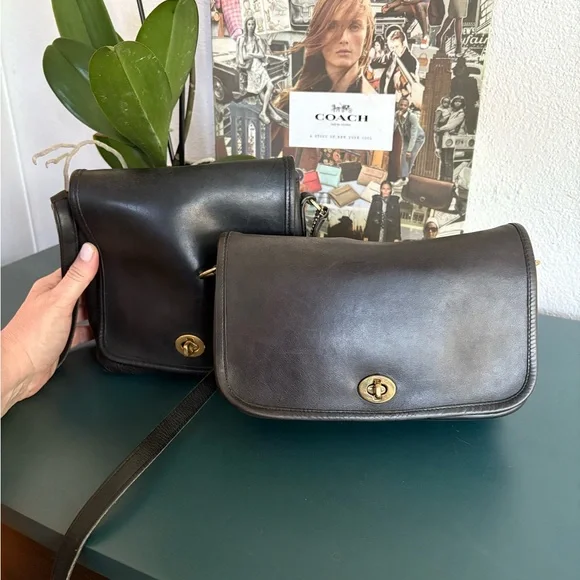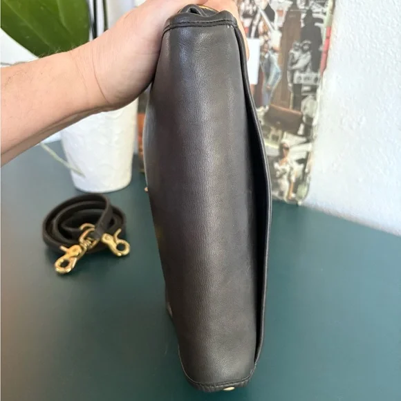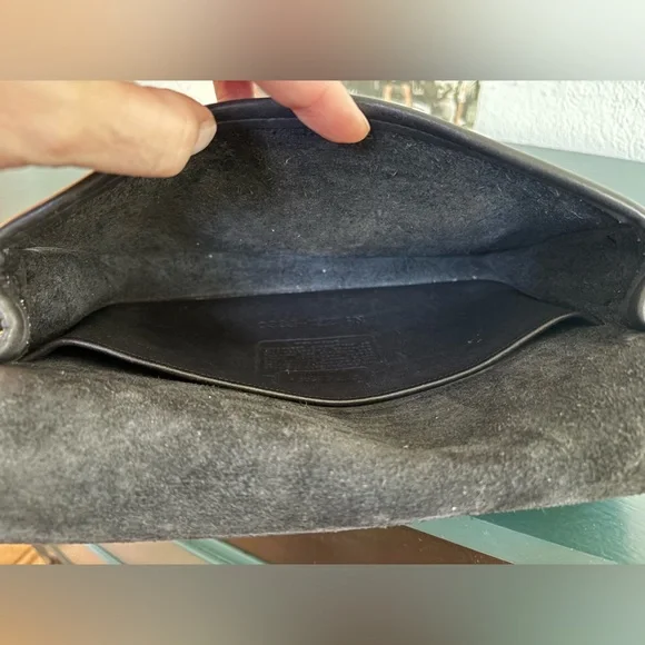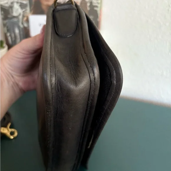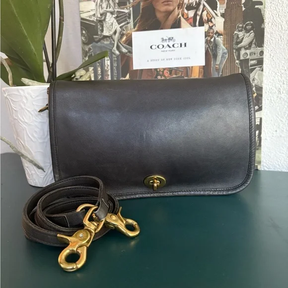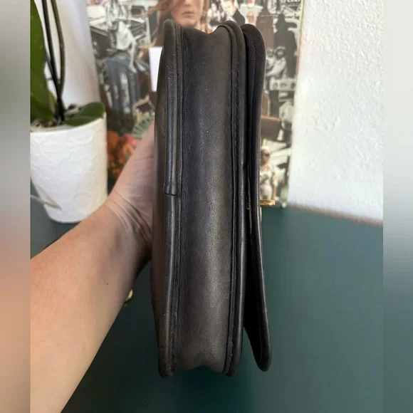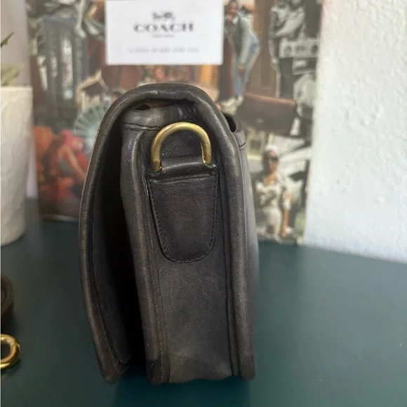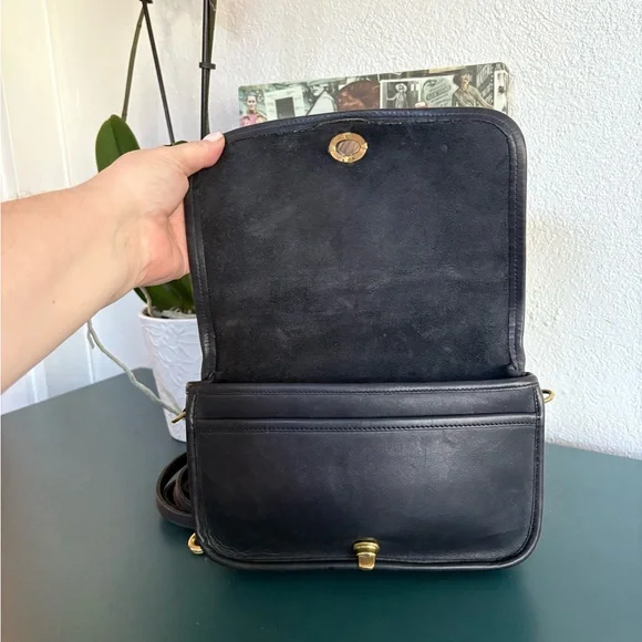 This bag was made in 1988 (U.S.A.)On stamp was only done for one year. Discover the perfect blend of style and functionality with the Coach Pocket Purse Crossbody Bag. Outside slip pocketand an inside front pocket under the flap and also on the inside (3 total). Detachable strap allows you to use as a crossbody or a clutch. There are a couple of places on the strap with a broken stitch (very common in these vi rage bags and does not impact functionality). Hardware works great, has been polished and the bag has been conditioned. The top of the bag has a lot of texture in the leather. There is no hang tag. Please see last picture.Looking at the bag,believe it is navy, although it could be a faded black. So, let’s call her “blavy”! This bag has been authenticated in the FB CC group.