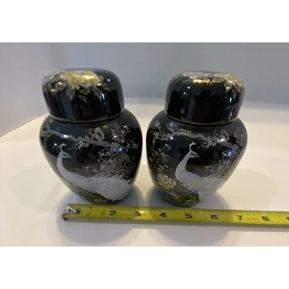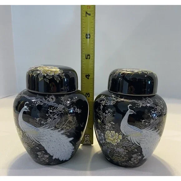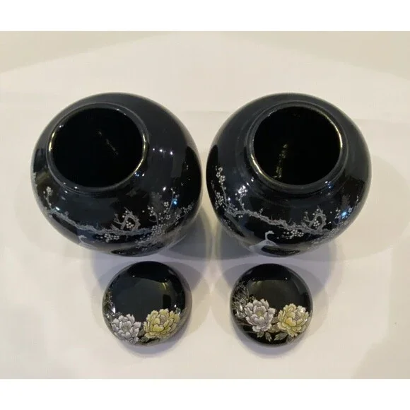 This beautiful set of two hand-painted ceramic ginger jars is a must-have for any collector of Japanese culture and history. The intricate details and delicate designs are a true work of art, and the provenance of these jars is not available.Crafted in Japan, these jars are a representation of the Japanese culture and are perfect for display in any home. The jars are not handmade and have not been modified in any way. If you are looking for a unique addition to your collection, these jars are definitely a great choice.